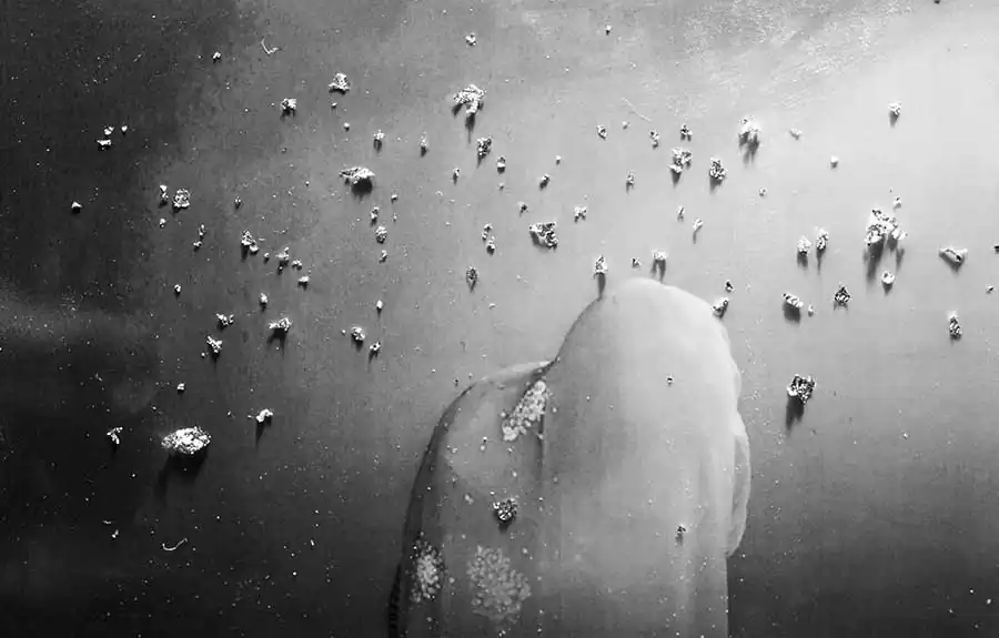 In this portfolio, ‘Roar of Silence’, all her subjects are covered in fabric, there is no face or body to see, only a figure. She creates a blank slate, a tabula rasa, instigating experience and perception from the viewer which leaves more room to stir imagination. These abstract photographs hum with ambiguous means provoking the in the moment experience of the ‘taking’ and subsequently the ‘looking’, releasing associations, fantasies and memories between the photographer, subject, photograph and ultimately the viewer. Her artistic drive is to create what she believes is real but that is undefinable, the occurrence which Stephanie refers to as, the magic, the visiting unconscious, the uncanny, that shows its face with tremendous power coming furiously and vanishing as quickly.