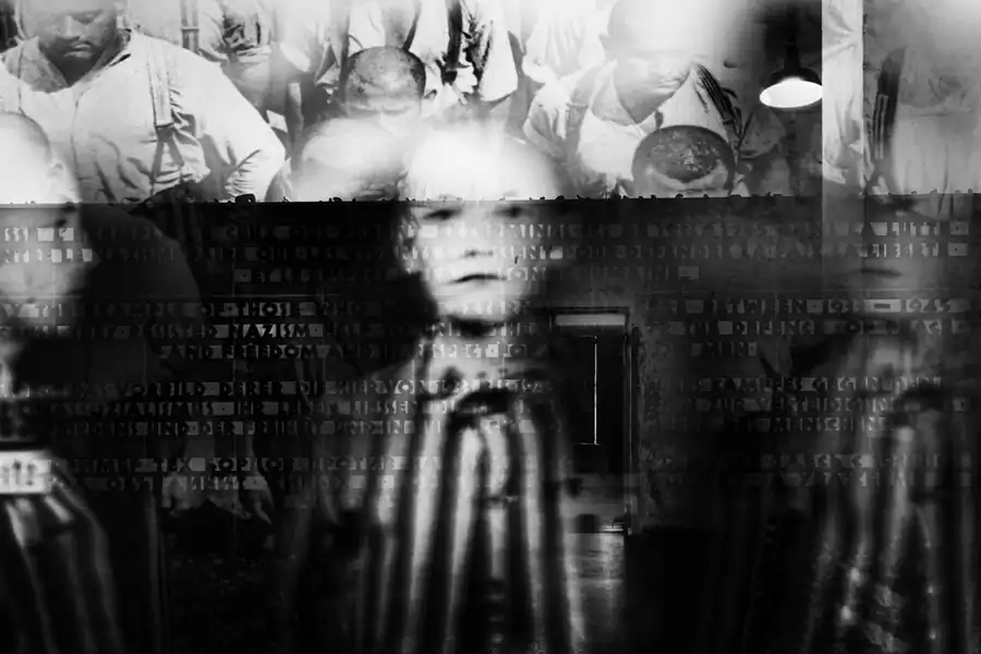 The Ecce Homo Series is thus at the same time about the human and about what Nietzsche called overhuman. A human is the only living creature that can destroy what is at the core of the world. Robert’s photos therefore do not involve simulated good-looking people or romantic scenes, because he unceasingly talks about the Holocaust as a machine, and about people within it.