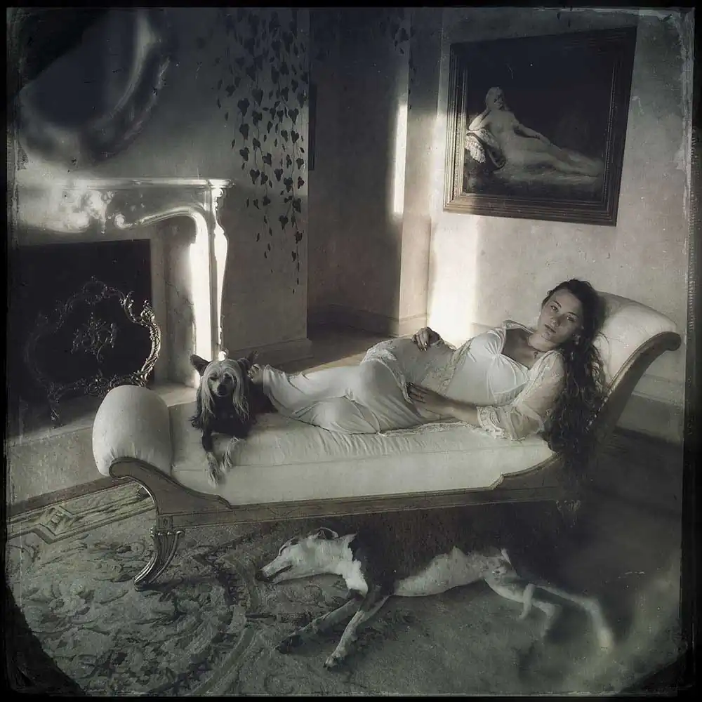 The world that is explored is one where the line between human and animal overlaps or is blurred, where animals are part of mother and child’s world and humans are a part of theirs. Fantasies and eccentricities are explored to create a cultural space in the photographs where animals not only co-exist with humans, but also interact as full partners.