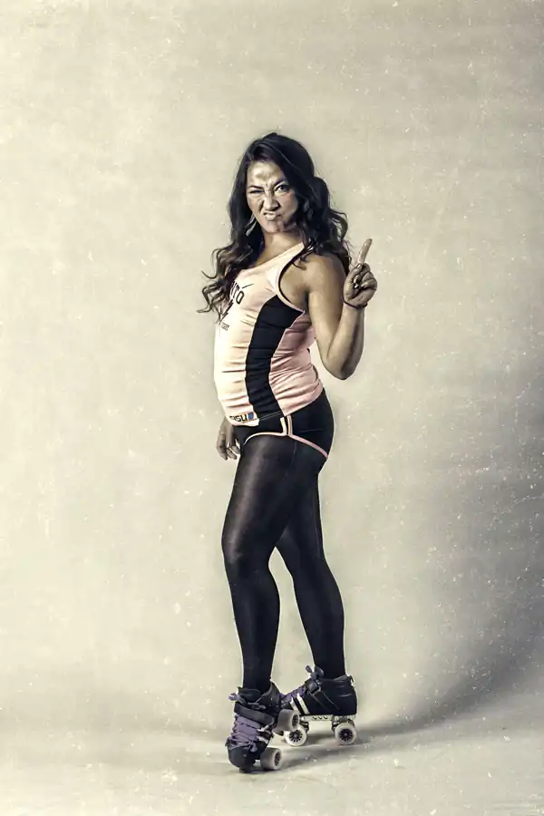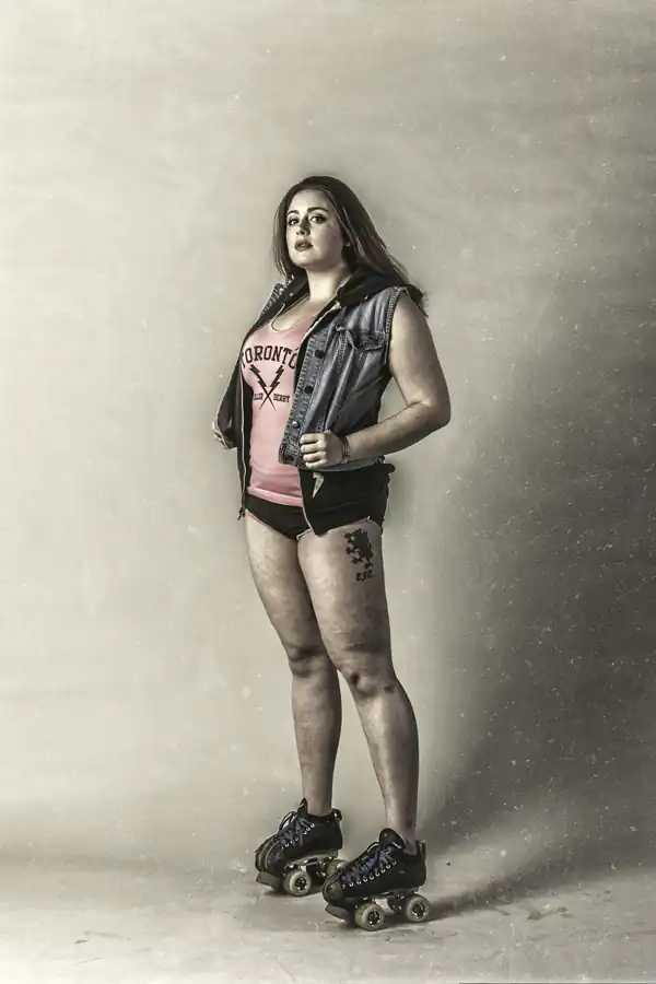 We (as in e+i) actually approached the Toronto Rollerderby League directly, one of our friends is a team member. The girls pretty much were open to any approach from us, they just wanted to look great! It’s a tough sport, very physical and fast-paced. The girls (and team coach) wanted to not only look tough and competitive but also keep theirfemininity. We wanted to give the images a gritty and strong presence.