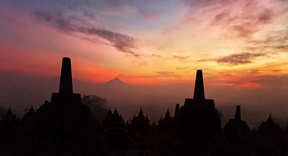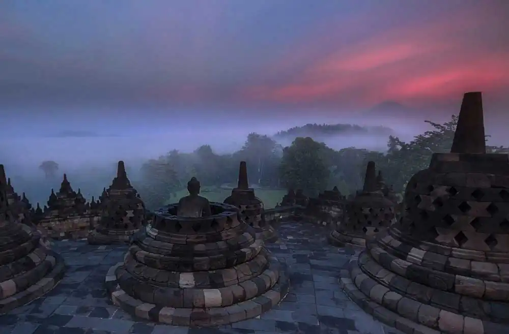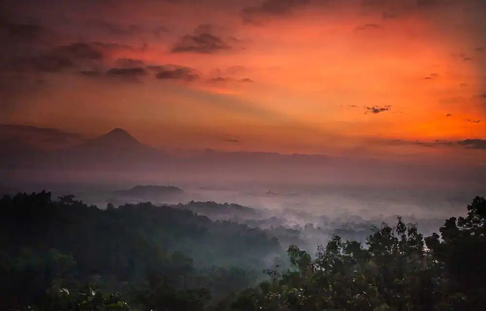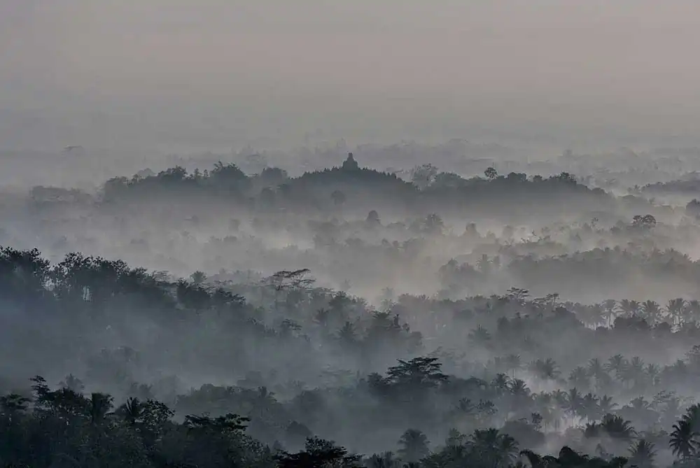 As the first rays of light break through the thick mist covering the ground, slowly and gracefully, Borobudur temple comes into the view.