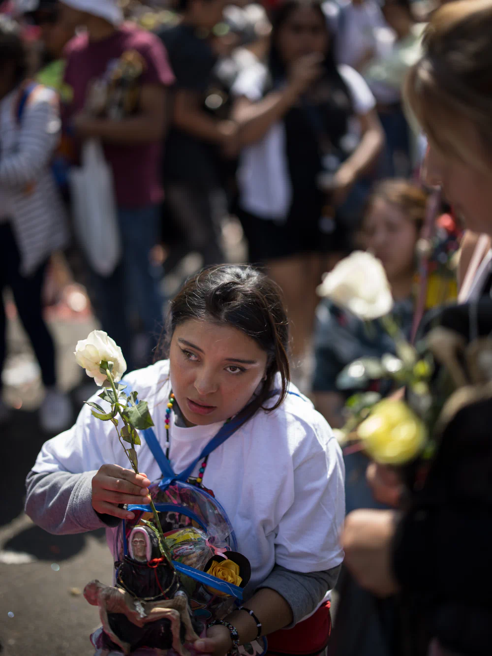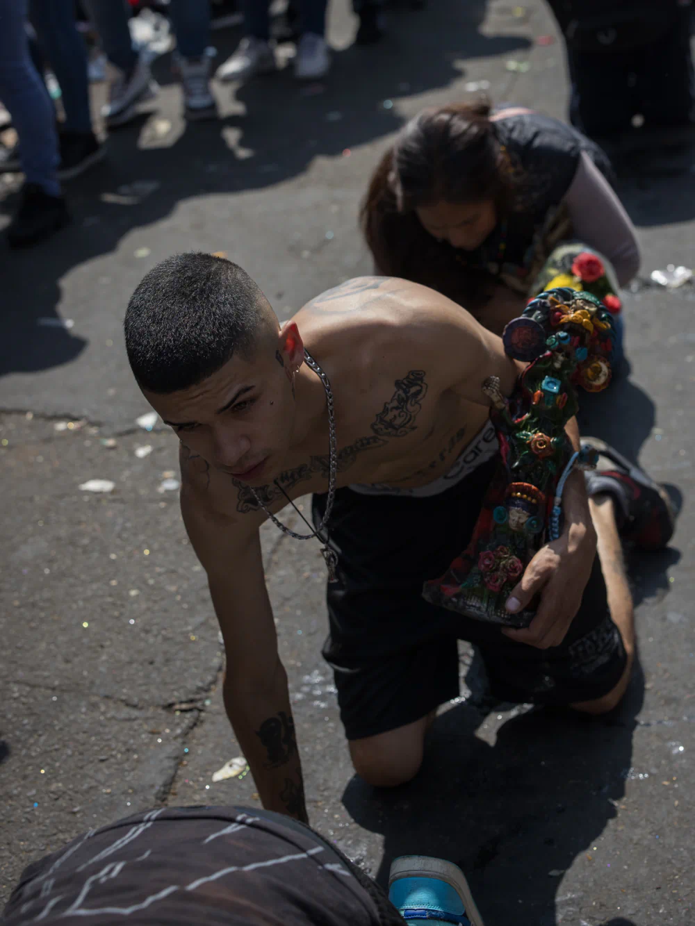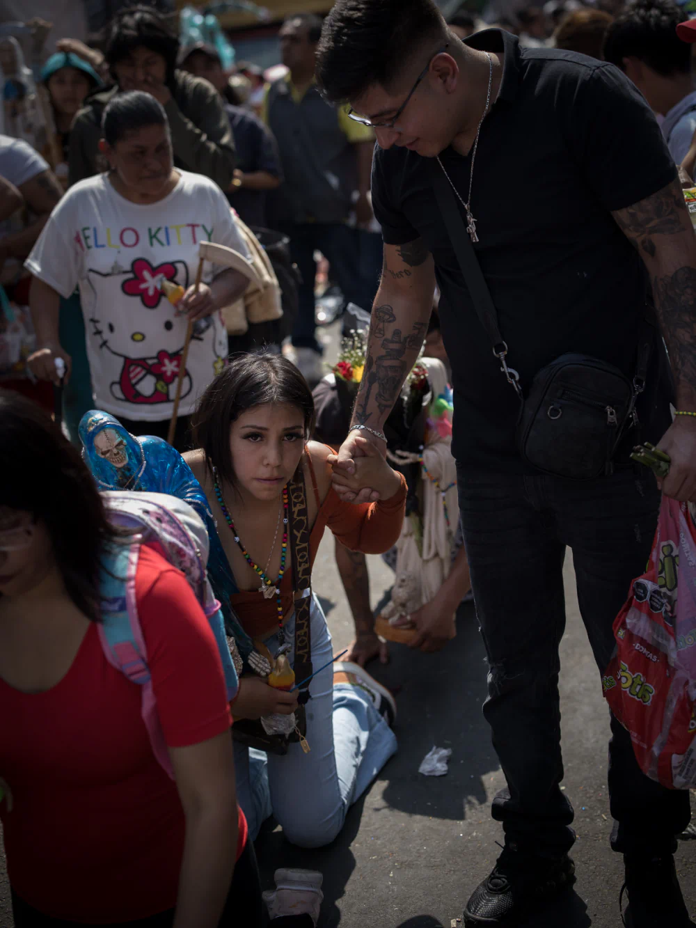 On November 1st, when much of the rest of the country is celebrating the Day of the Dead, thousands of devotees of Santa Muerte gather on Alfarería Street for the Santa Muerte Rosary. Worshippers crawl on their hands and knees to her altar, carrying statues of the saint and offerings of flowers, tobacco, alcohol, candles, and marijuana smoke as gestures of gratitude or pleas for protection and renewal.