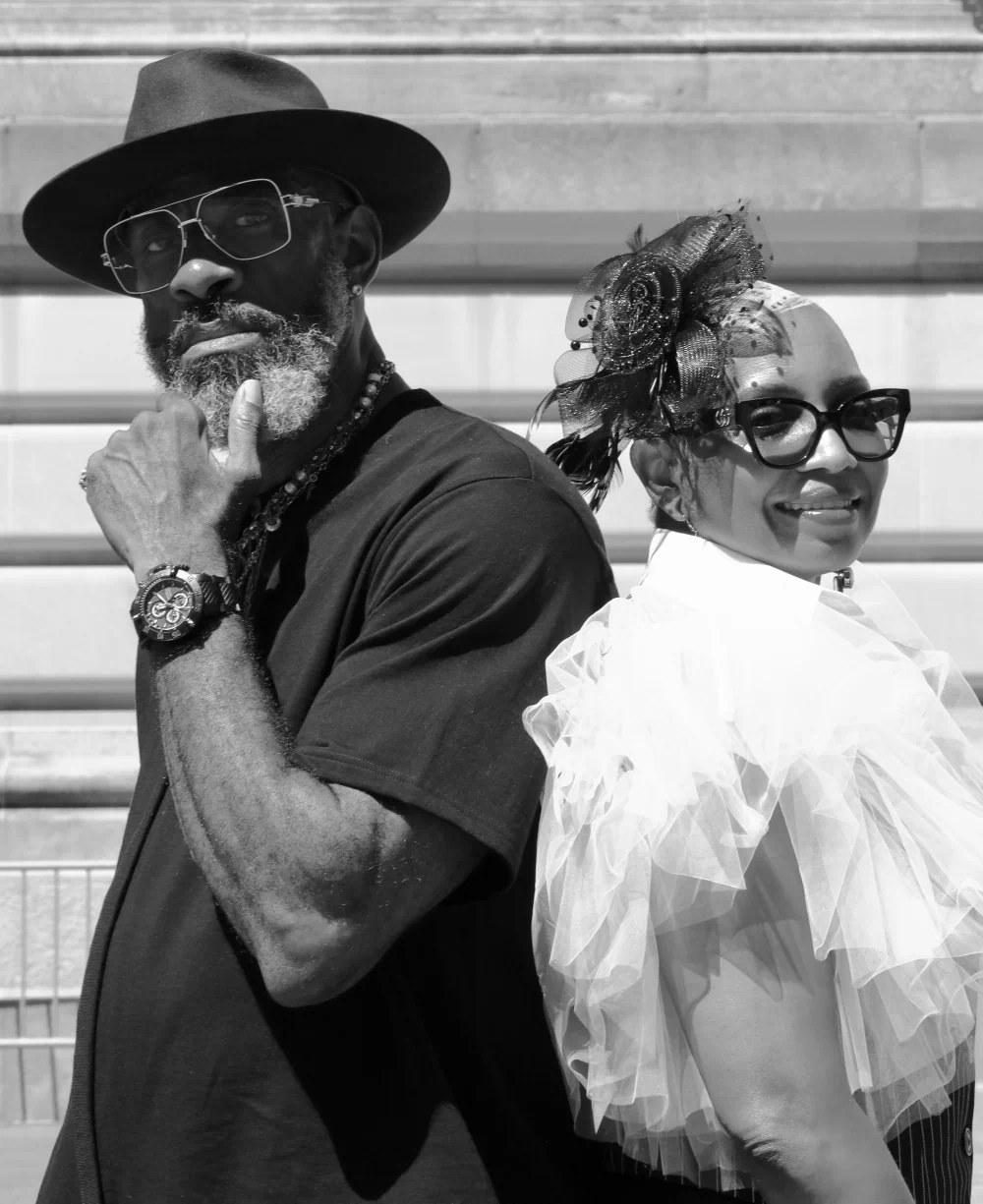 There are photographs that show the interconnectedness of people on a personal level: a young couple spontaneously posing for the camera; a pair showing off their attire in honor of the Metropolitan Museum of Art’s exhibition “Superfine: Tailoring Black Fashion”; an elderly man playing the erhu for a toddler; and a man animatedly talking on the phone.