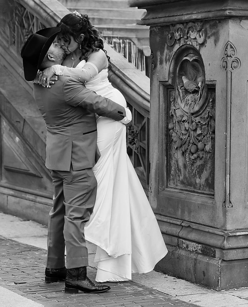 At the other end of the emotional spectrum is a photograph of a couple celebrating their wedding. The groom lifts the bride in his arms, and they embrace, joyfully beginning a life together.