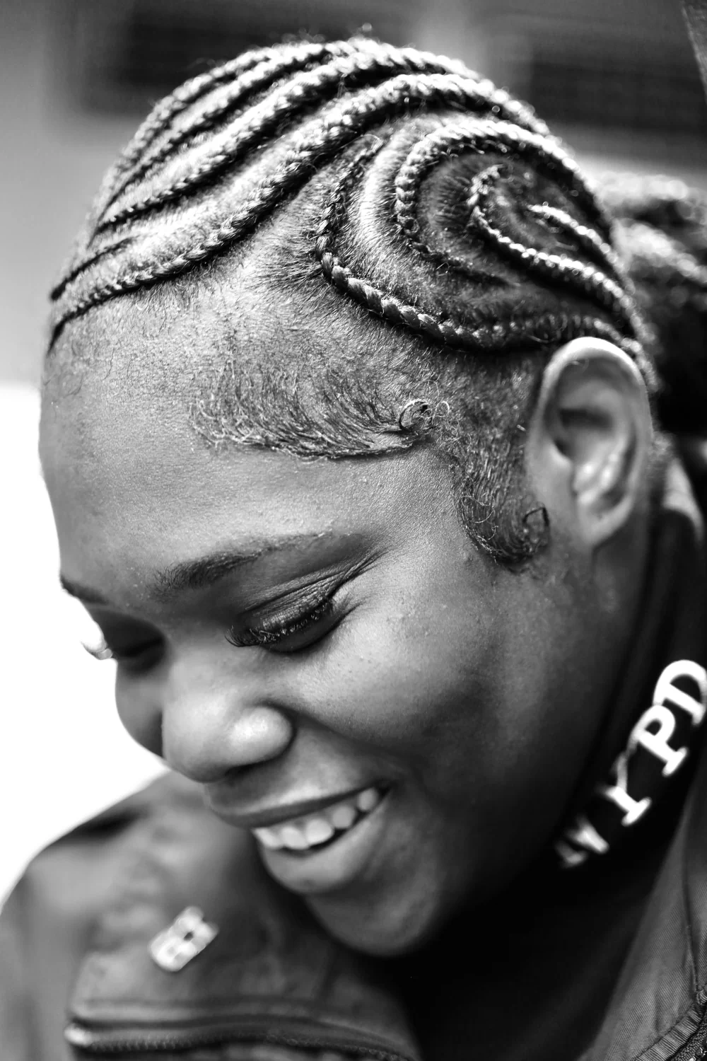 There are two women—one a New York City police officer, the other a woman tossing her head back, reveling in a beautiful spring day—each unabashedly enjoying a moment.