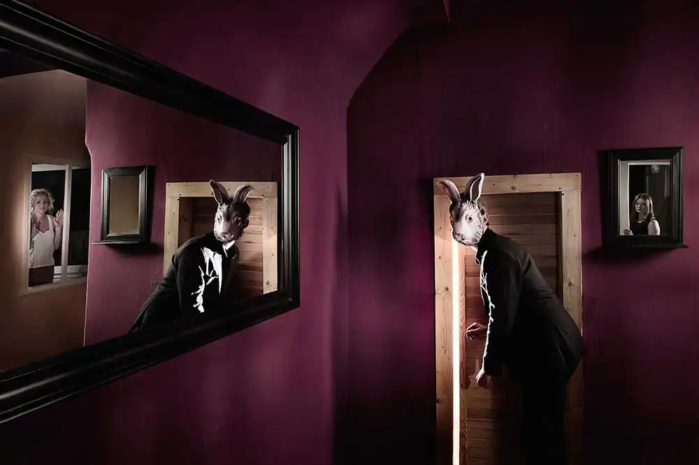 The individual ideas behind my images can have many origins. As mentioned earlier, I am primarily interested in depicting situations of self-reflection, exploring the human psyche and or our modern society. I try to examine these “leitmotifs” within different bodies of work, always with a different focus. Once I have defined this focus, I start with typical creativity techniques like brainstorming or mind mapping. Sometimes this already leads me to a concrete concept, but mostly I have to work for a long time on a vague idea. In my case, inspiration is deeply connected with investigating everything that happens around me and being very attentive. Sitting in front of a sheet of paper normally doesn’t do the trick for me, I need to be confronted with places and situations. Finding an inspiring scenery by chance can be wonderful, but often I search for places and rooms that either fit an existing idea or I adapt them to my imagination and then combine them with narrative elements. When I’m stuck with an idea, it helps me a lot to go for a long walk or a jog – but also to discuss my thoughts with my wife who is, luckily, always critical and honest with my ideas and a very creative person herself.