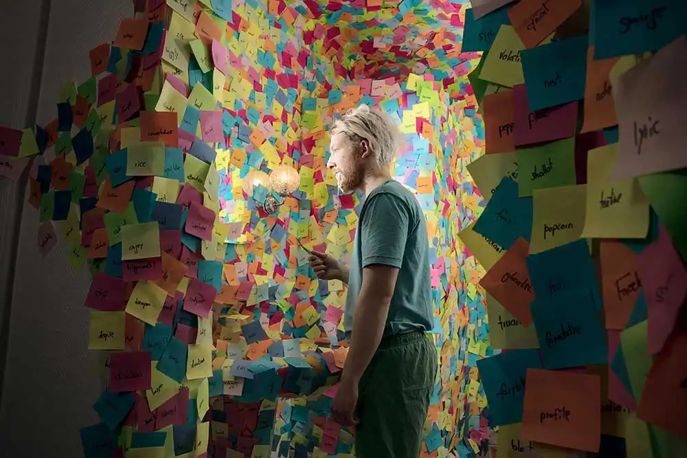 First of all, I have to mention that there was some kind of a natural transition between “Grown” and “Syncope”: After finishing the last image of “Grown” – “Ride-On Car” – I struggled with the idea of keeping on using specific childhood relics for this body of work. I literally had the urge of “moving on”, but could not figure out how until I visited “The Old Operating Theatre” in London – a museum about the history of medicine and surgery in which I accidentally stumbled upon the word “Syncope” (the medical term for “fainting” or “passing out”). A couple of days later, I decided to broaden my perspective within my series: The act of self-reflection, but also the feeling of being lost, is not only linked to the process of growing up, but, in my opinion, is a phenomenon that can be witnessed everywhere nowadays. There is a plethora of stimuli all around us, be it from social media, our jobs or our daily private lives and duties, and this can often make it hard for people – me included – to focus. “Sticky Notes”, as an example, addresses this feeling visually quite directly and plays with the image of how it might look within our heads from time to time.