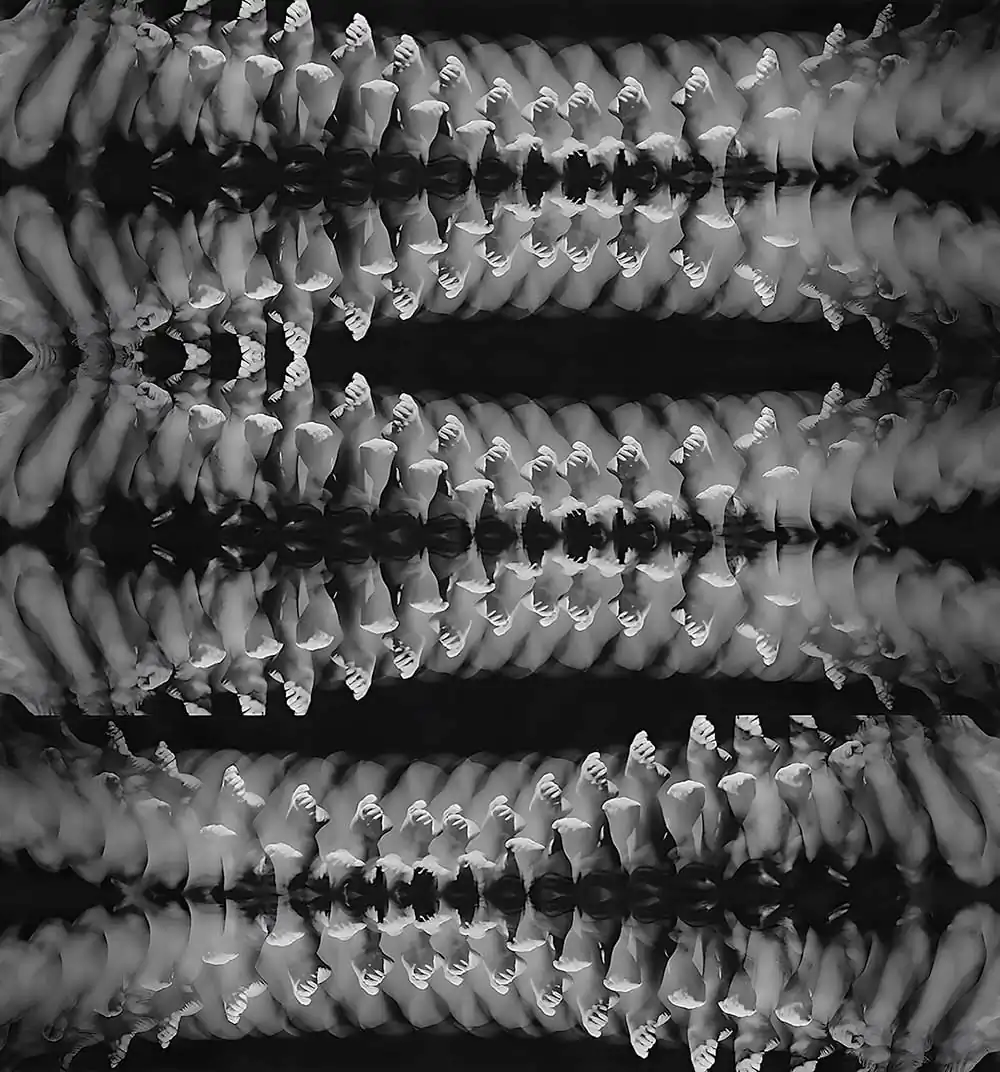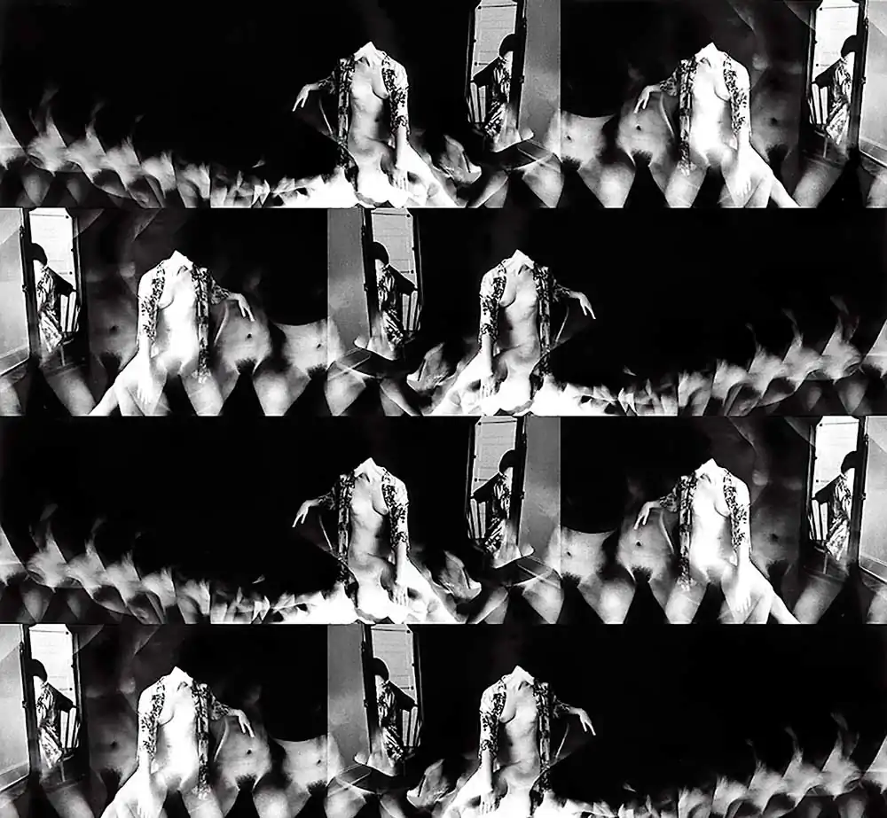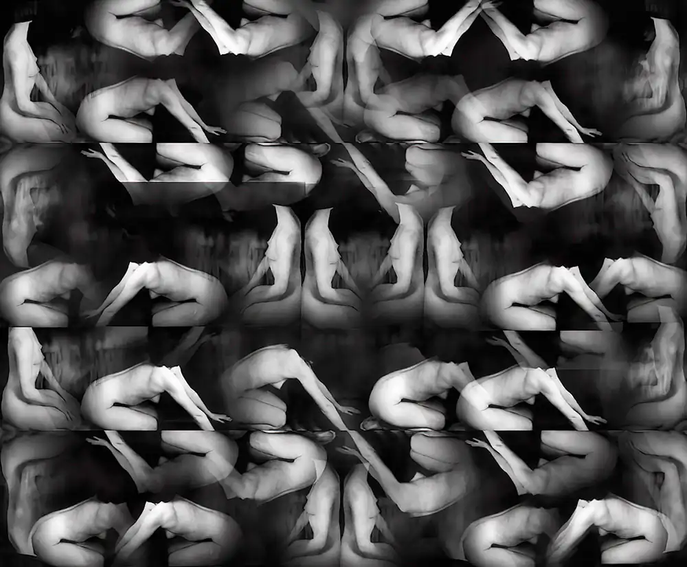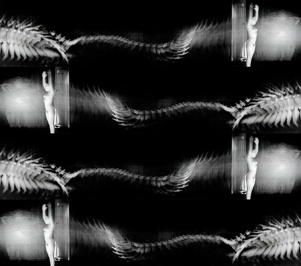 I would lie on the living room couch, staring up at the cathedral ceiling, dreaming of the world upside-down. As an adult, I still have a fascination with motion and time I am a child at heart, as evidenced by my large collection of wind-up toys. I fell in love with the late 19th-century human locomotion photographic experiments of Étienne-Jules Marey, Eadweard Muybridge, and others, and began experimenting with the moving film stroboscopy technique of capturing motion. After many “happy accidents,” I developed my own version of Time/Motion studies, using the nude figure as both subject and foil.