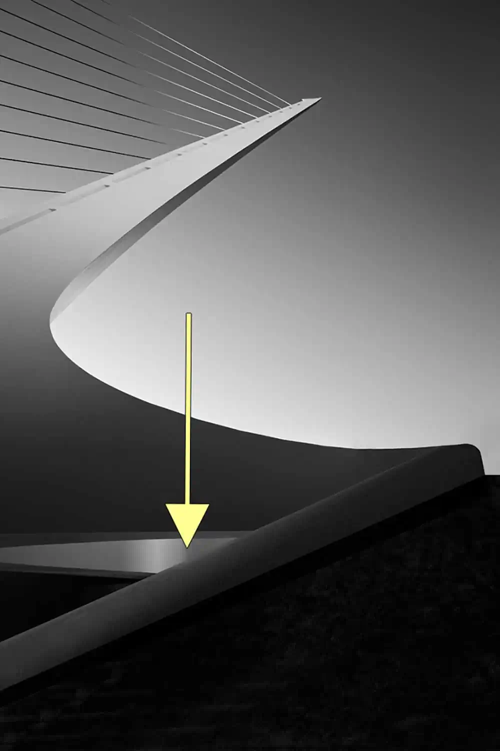I was struggling with finding my third image but knew that it had to be one that would tie in the first two. An image that showed the bridge structure as well as the sundial light effect. By capturing the pylon with the in-caved area in profile I managed to tie the two together while still being visually aware of the linear harmony.