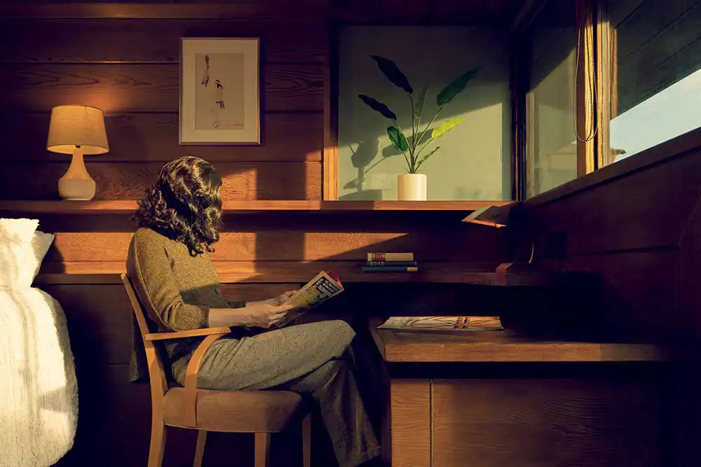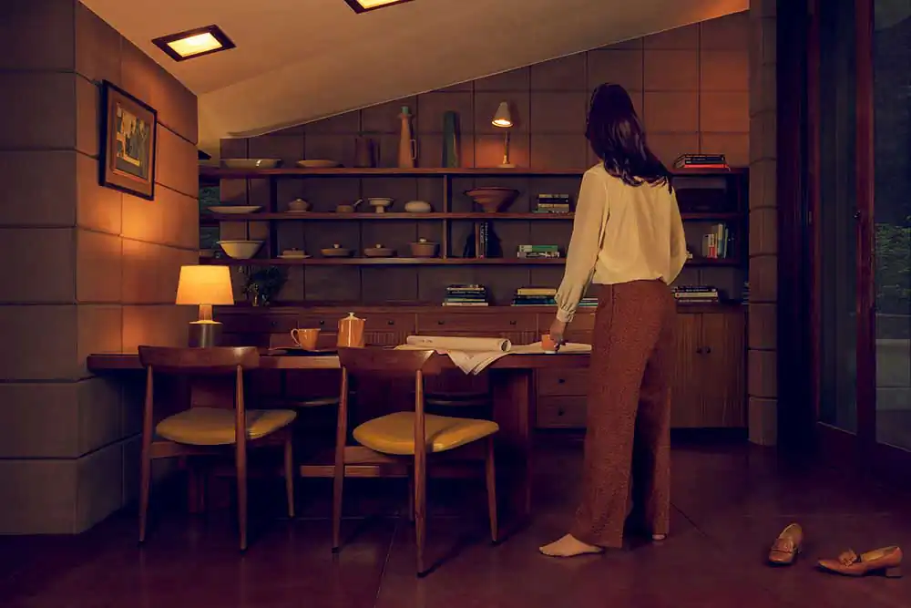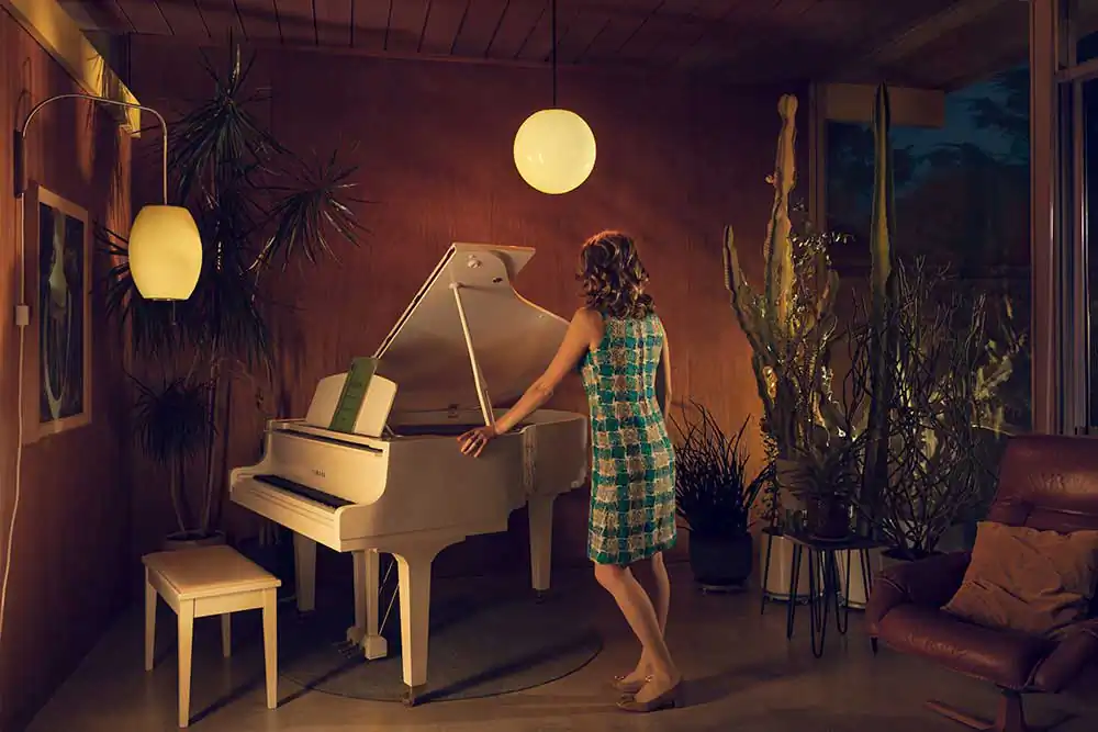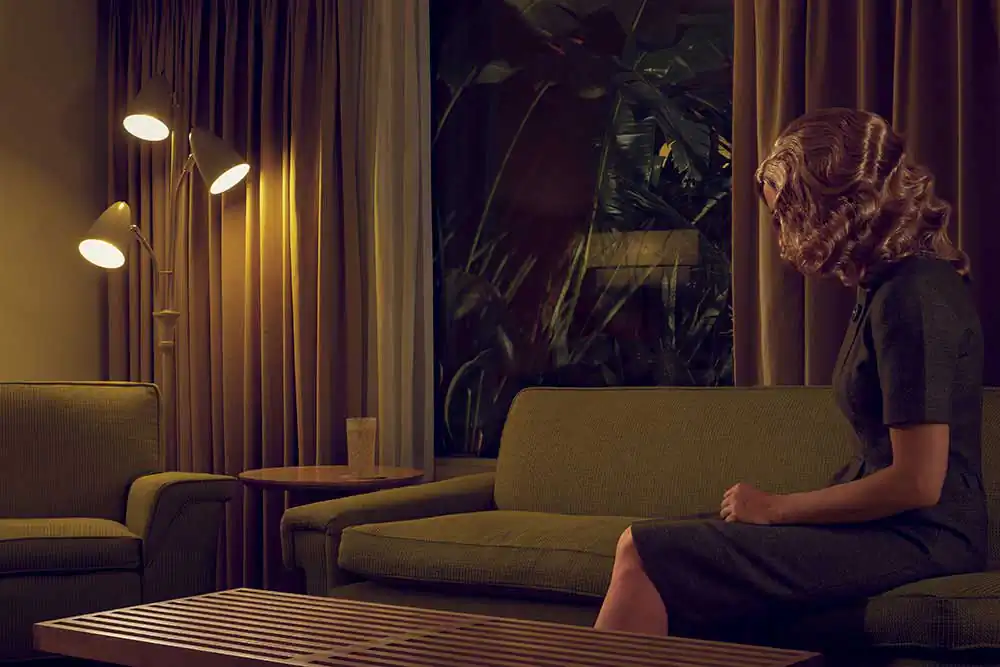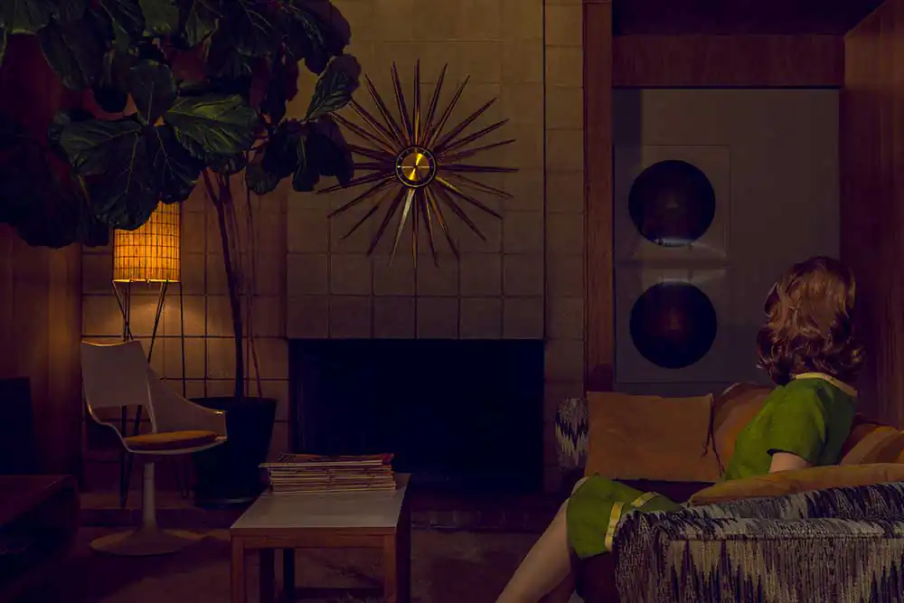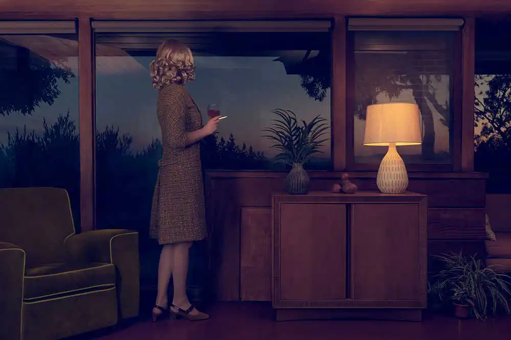 Through a mise-en-scene self-portraiture series, Made in the Shade depicts characters in Mid Century Modern settings, mirroring an era that was aspiring for change.
