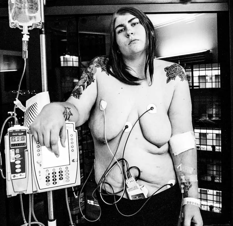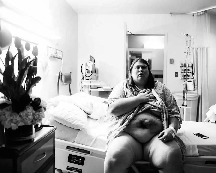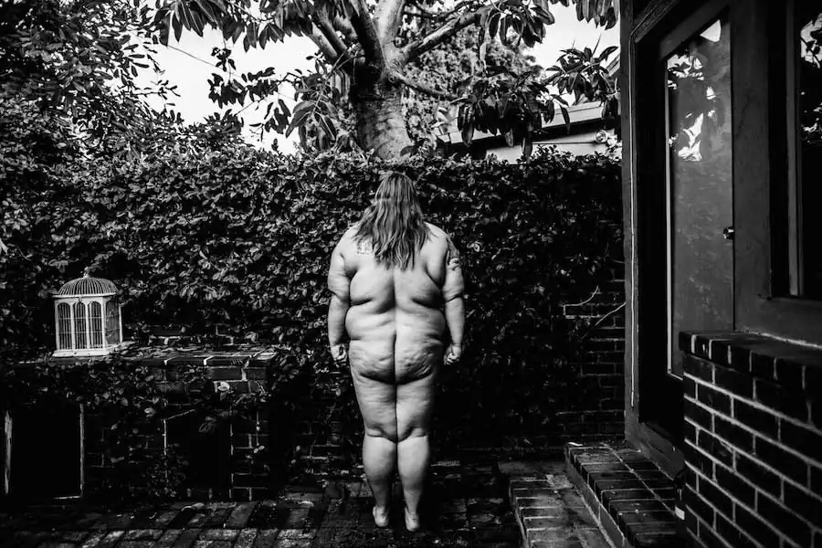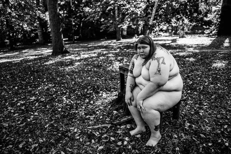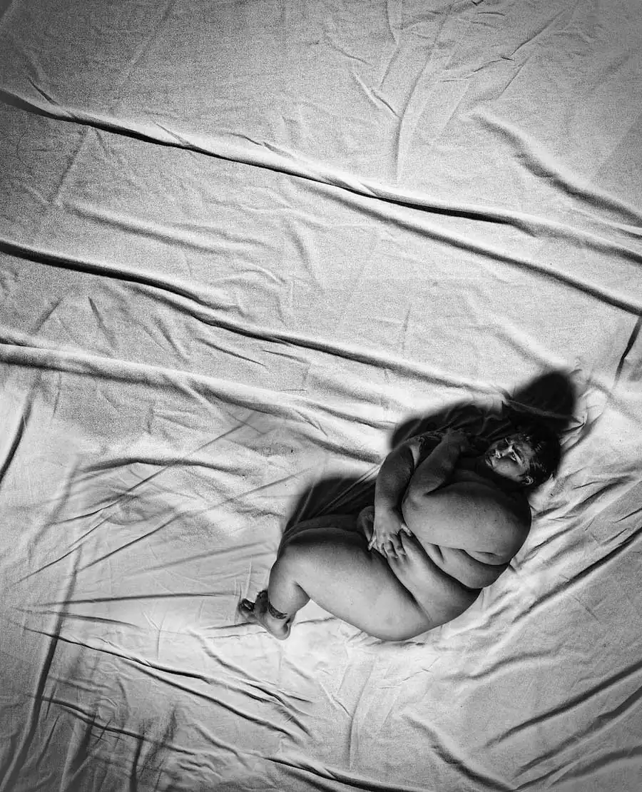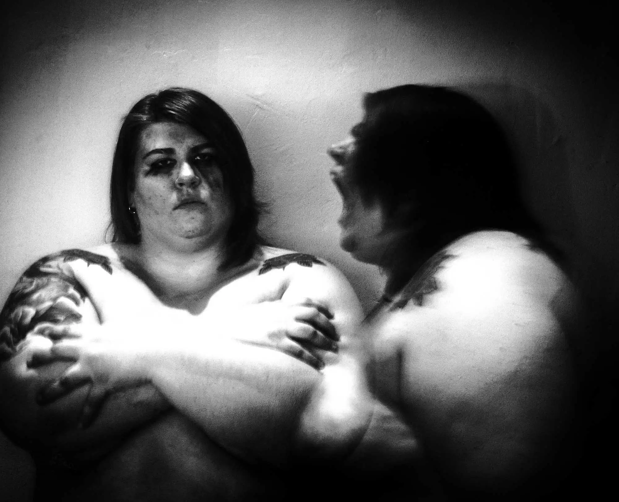 I take self-portraits as a way to reverse perspective from how I see myself to my interpretation of how I am seen by others.  This body of work represents the feeling that interpretation provokes.  This work does not exclusively relate to obesity or size.  It is also about misuse of a human and not being seen as such.  This is a body of work that requires fearlessness.  I have had to set my fears aside in order to convey my intended message.  I think judgment derives from lack of information, meaning – when we don’t know the whole story, we fill in the missing pieces with our own knowledge.  I think the reason we fight as a community is that we dissociate from humanity, not allowing ourselves to really know a person is a person. Regardless of appearance, everyone has been made to feel small at some point.  My hope is to generate a relationship between myself and others through my work and I ask you, as a viewer, to look for the similarities instead of the differences.