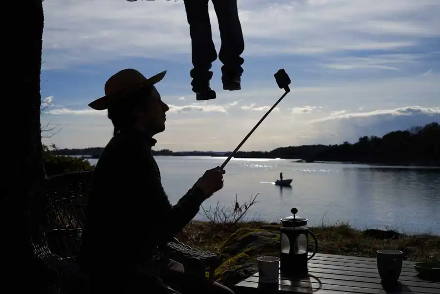 The Selfie Project does, however, not show selfies, but the scenes of odd and private selfie acts, with a twist of humour. Taking a selfie is a performative act, where self- regulation and self-disclosure form part of the performance. On the one hand, it is about taking control and pretending to be someone, and on the other hand, let go, or lose control. The Selfie Project plays with this paradox, and also with photographical conventions from genres like snapshots, postcards, portraits and film stills.