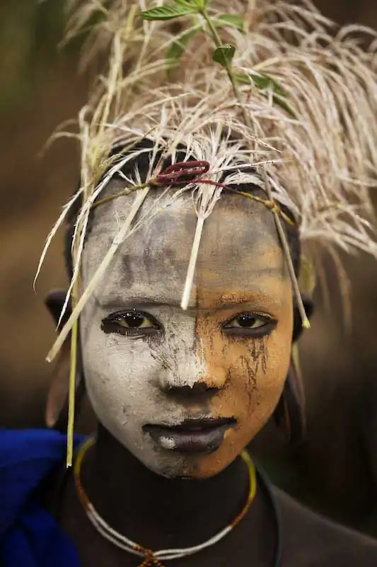 Inspired by their environment of wild trees, exotic flowers and lush vegetation.The Suri tribe use the clay soil of bright yellows, startling whites and rich earth-reds to paint each other’s bodies and make bold decisions about their outfits.They are the only tribe in existence that makes large elaborate headpieces from nature. In essence, they become a walking body of art; known as a living museum to anthropologists. For generations, these tribes have been shielded from the modern world in a place that is still raw, natural, and completely timeless. More….