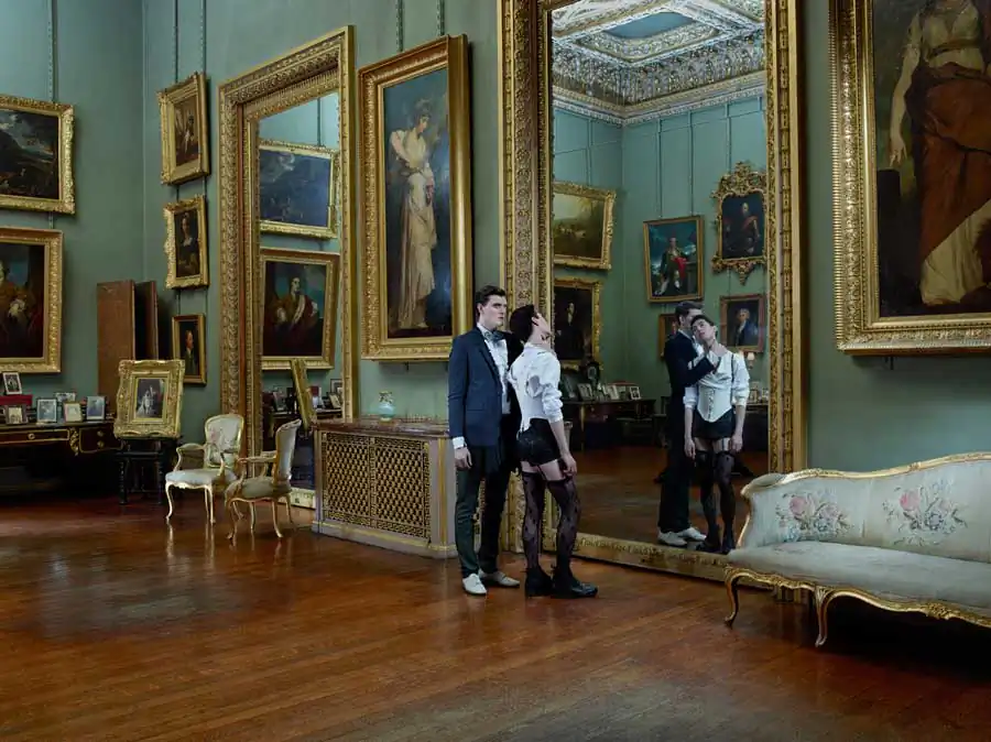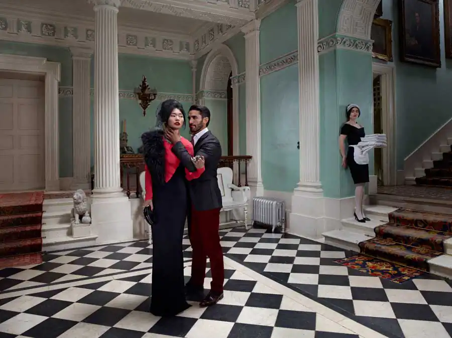 “In Service” concentrates on amoral episodes that took place in some of the stately homes of Britain during the Edwardian era. I was fortunate to find three stately homes in the south of England that provided eminently suitable backdrops for shooting the series. Built in the 18th Century their interior decorations closely resemble those found in grand houses in the Edwardian era. I dressed the servants in authentic Edwardian era style clothing. To heighten the class difference I went for a contrast in fashion styles and  dressed some of the female employers in clothing designed by Alexander McQueen and Chanel.