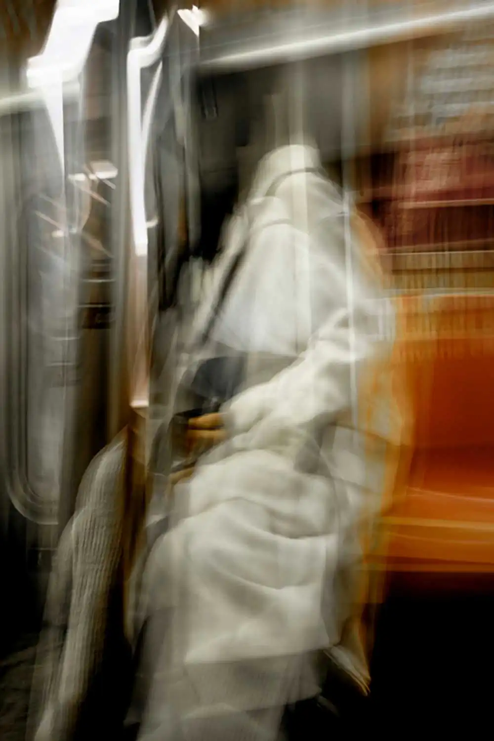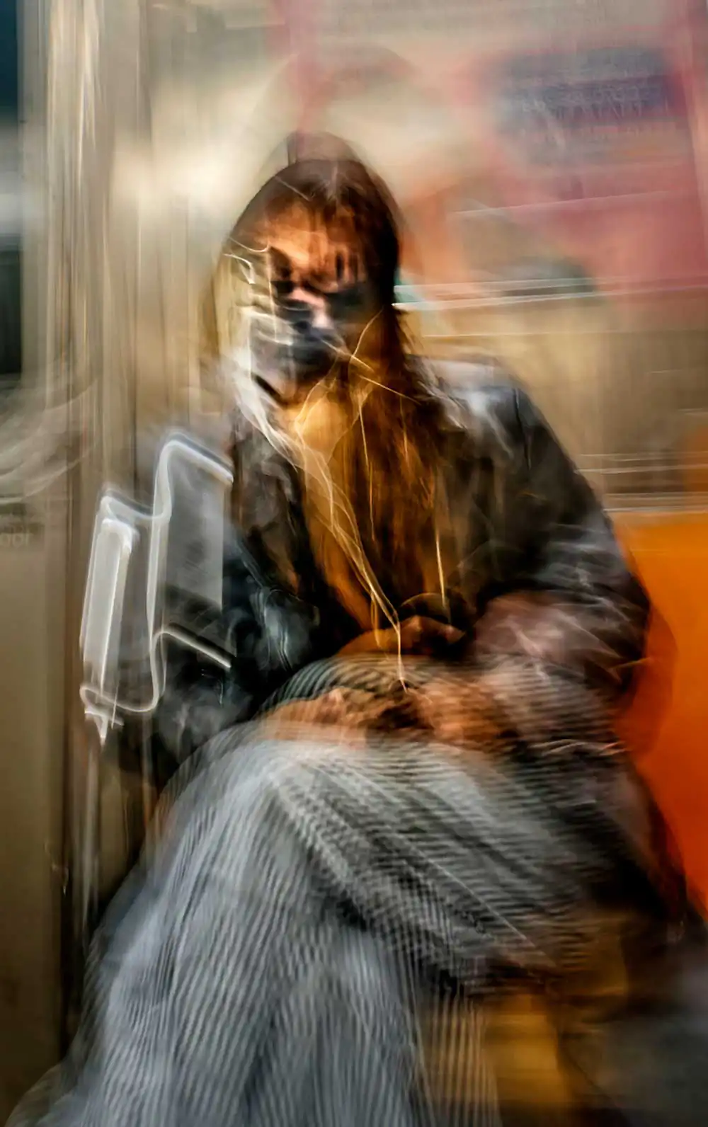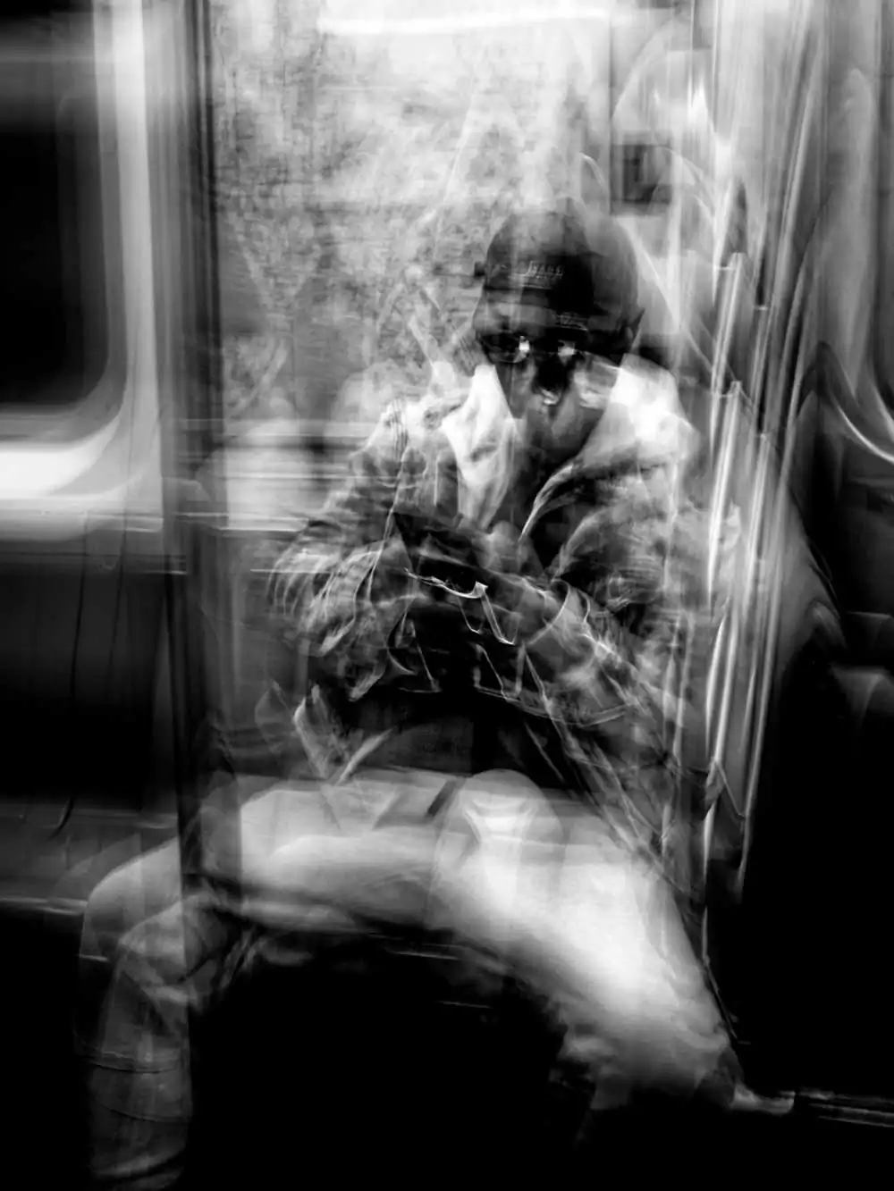Importantly, it is crucial to note that these photographs are entirely unaltered; they arise from the chance encounters of camera movement, underscoring the spontaneity of our subconscious. Each image represents a fleeting moment captured in time, revealing the unpredictable nature of our psyche. Just as the subway is an unpredictable microcosm of urban life, so too is our inner world—filled with unexpected encounters and unresolved tensions. This randomness reflects the chaotic essence of our emotions and thoughts, suggesting that the most profound insights often emerge from moments of chance.