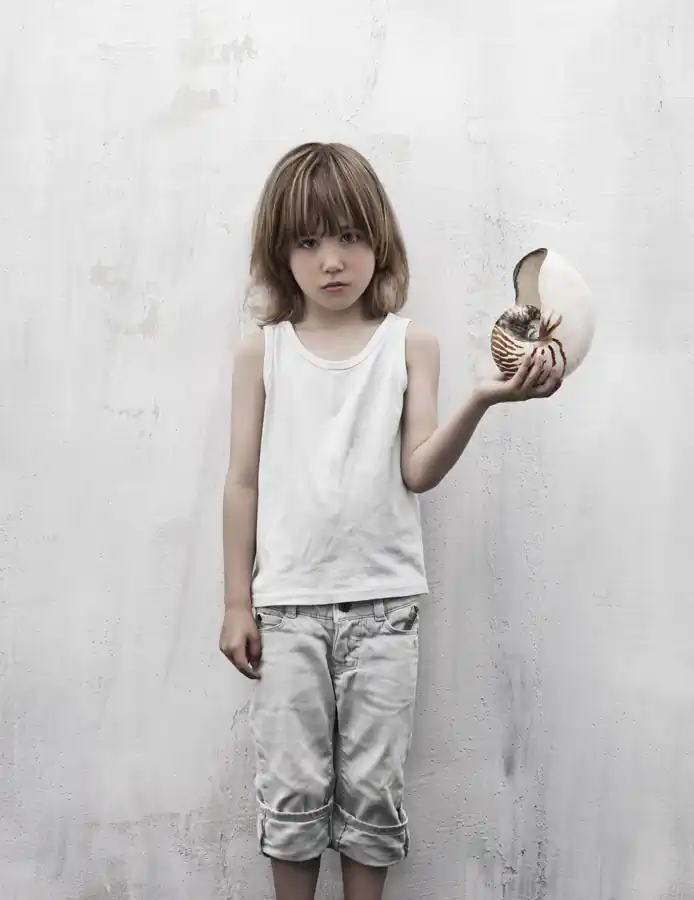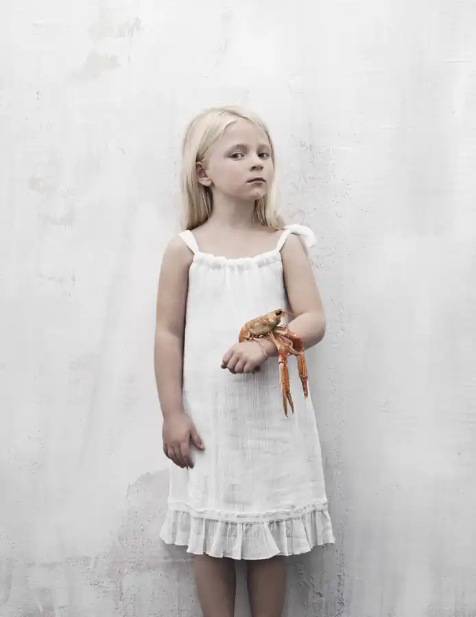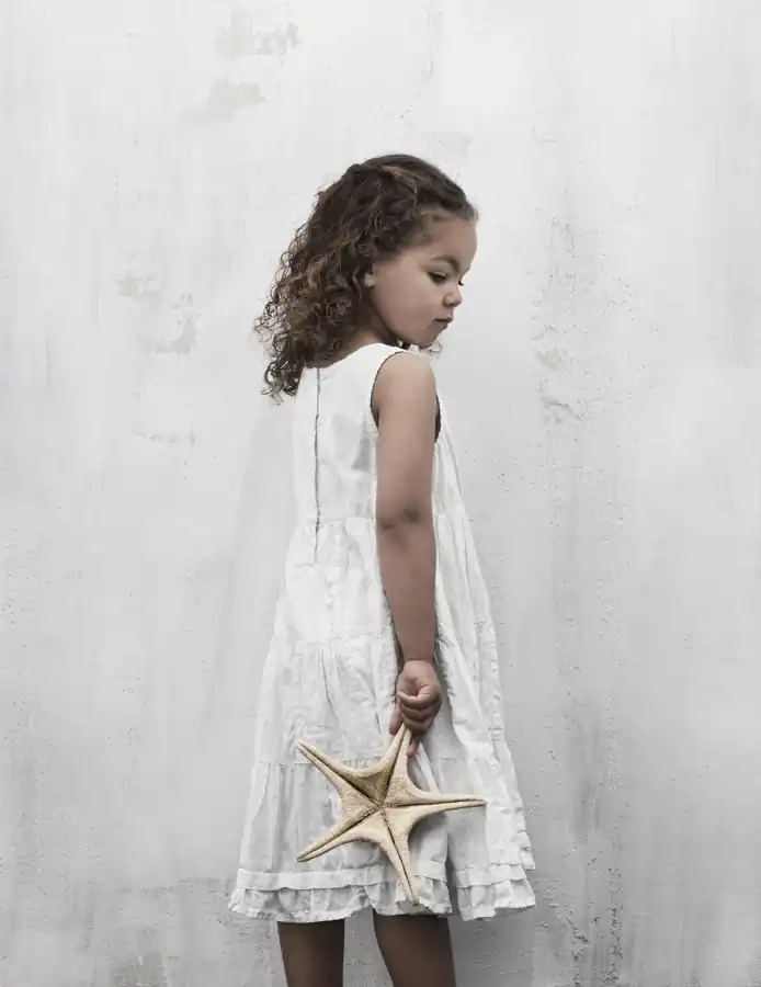 To make the children comfortable with the photo shoot, I had a lot of seashells and starfish. I let them choose on their own and their choices were very surprising! Again I was very happy with the results and I sent my work to a children’s fashion magazine in America. They really loved it and published it in their spring/summer printed issue.