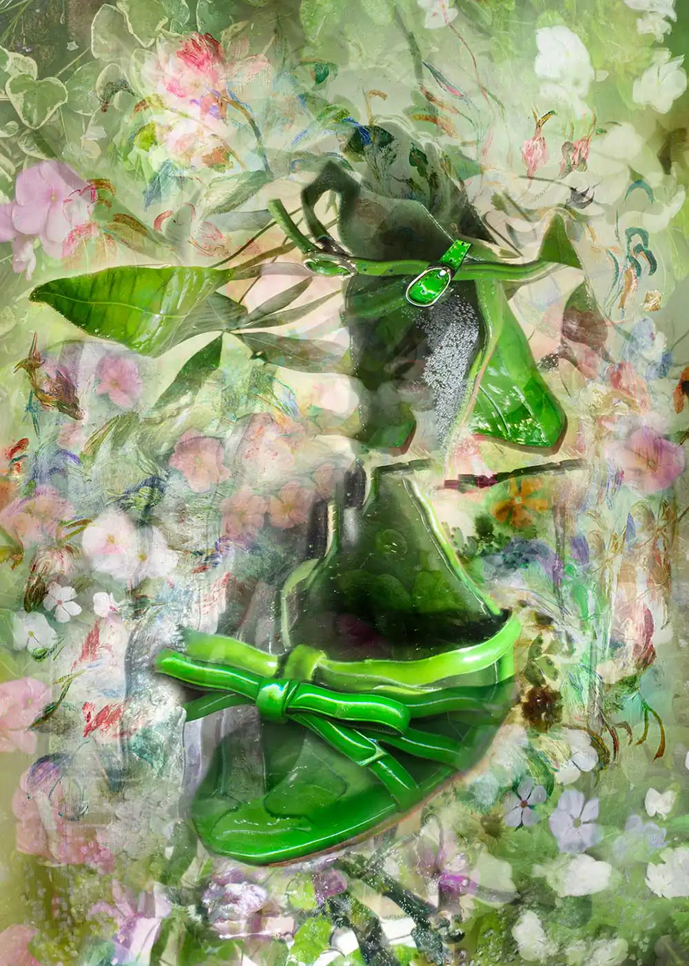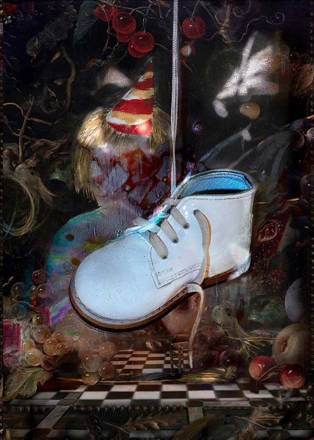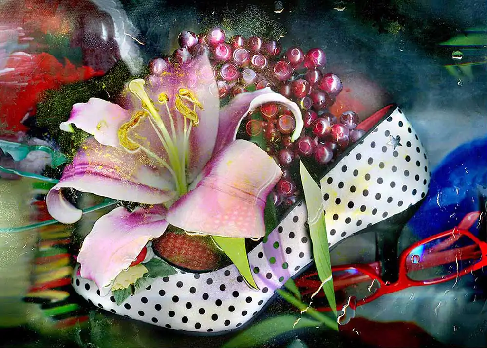 Hidden meaning mixed with morality in these plots resembles a long tradition in art where assortments of foods, plants, and oddities are superimposed meticulously to convey ethical, social, and philosophical messages. It is from this desire to create “live stills” — still lifes infused with a narrative that animates them, that the series Shoe Stories originates.