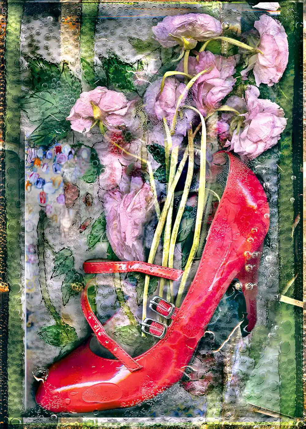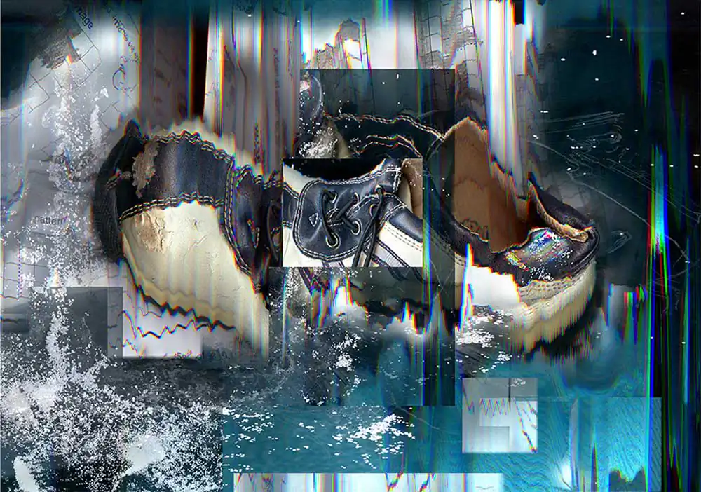 To that end I carefully arrange and rearrange the shoes I find, usually with flowers like a bouquet. And like flowers, I often submerge them in water, to provide a stage that is malleable and suggestive of the irrational. By using shoes as vases, I emphasize their qualities as metaphorical vessels, their resilience, their prospects and potential. I hope to evoke a sense of mystery and longing, hinting at the adventures of those who walked before, contemplating the journeys yet to come.