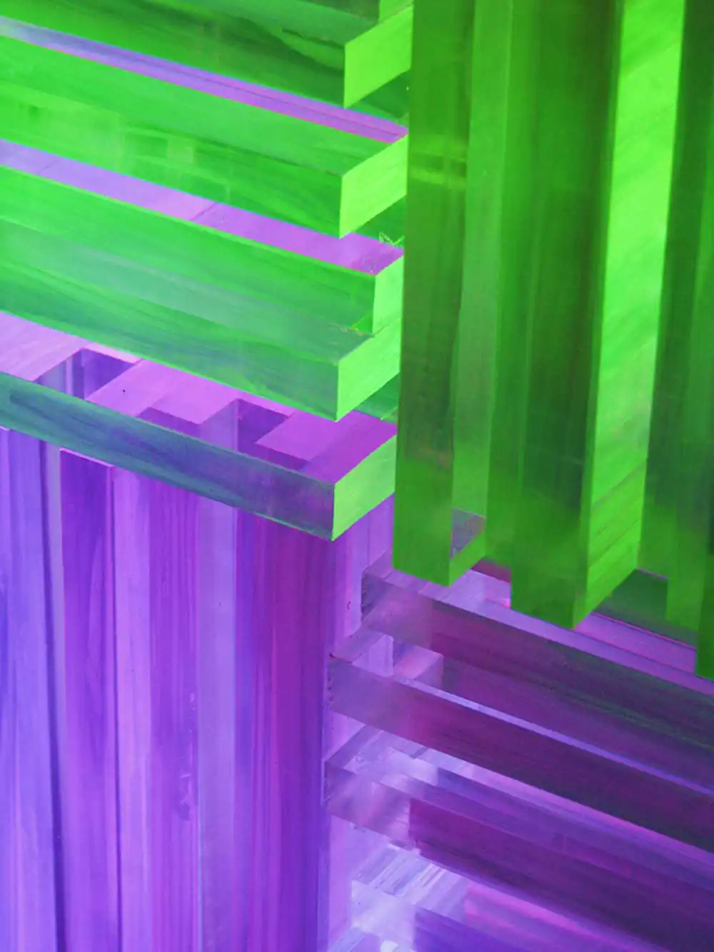 For more than 15 years I have been creating lumino-kinetic objects. They are made out of transparent Acrylic plates and colored LED-light.