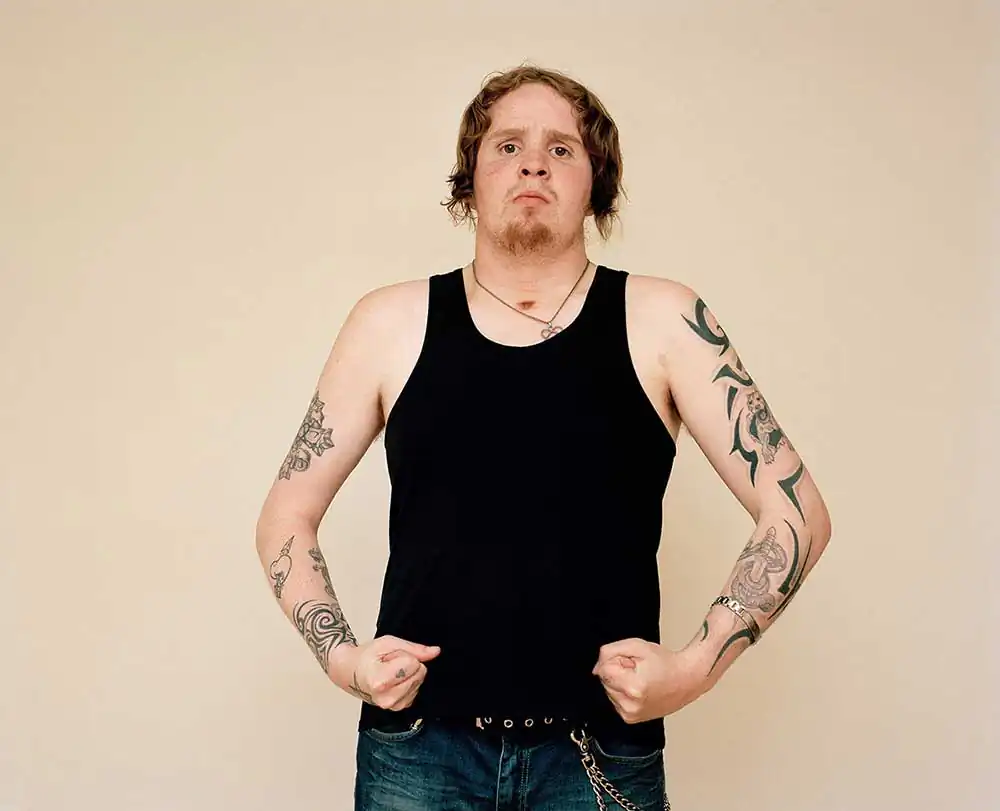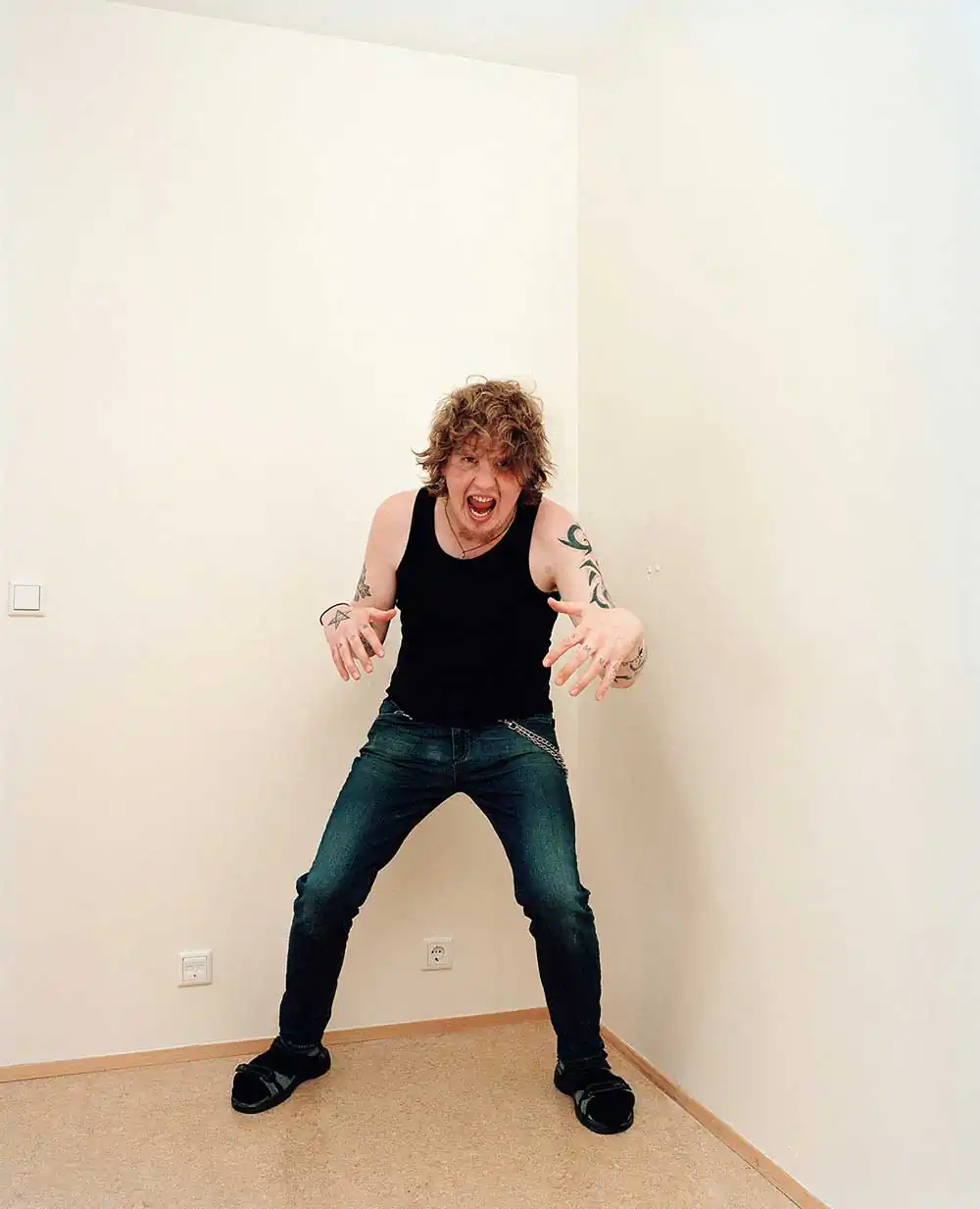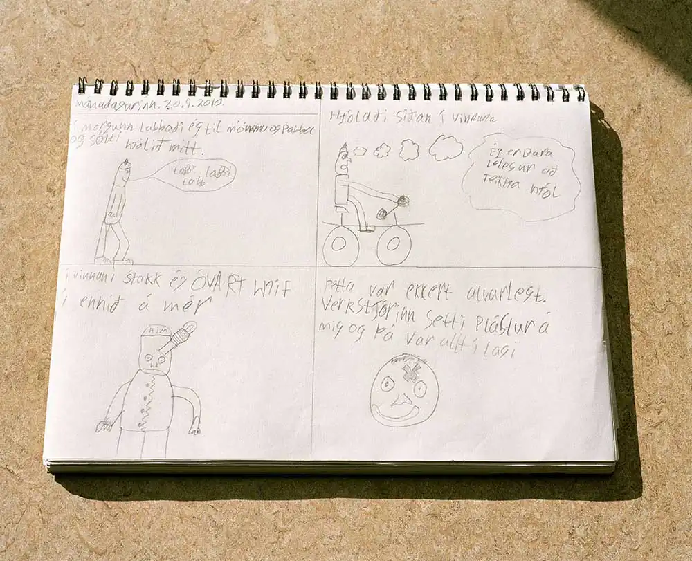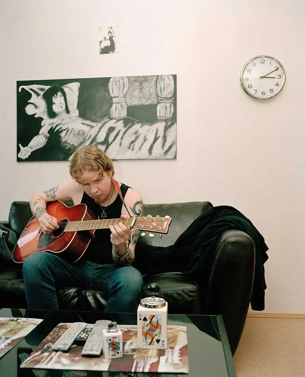On our way back, at the end of the day, we go to have a coffee at Kristinn’s. Arrives a big fellow. He is with a friend. They both sit at a table to sip a hot drink. This big fellow with his hazardous gait looks like a regular and is completely at ease with everyone. He comes to greet us, Jeff and me. He speaks English perfectly. I listen to him. He tells me a lot of wacky stories. I wonder who he is. A young alcoholic, a drug addict? I don’t really know where he is bringing me with all those crazy stories. He proposes me to watch him playing characters: an old man, a pregnant man, an alien etc …I look at him. But who is he? Then, he tells me his story. Seven years ago, when he was 18 years old, Siggi had a serious car accident, after which he spent two and a half months in a coma. He miraculously got out but his life will not be the same. Promised for a great future, Siggi can not do much anymore because he has problems of balance, quickly forget what he is told or what he did the day before. In less than 15 minutes, he managed to break my prejudices, make me laugh and touch me so much that emotion and tears rise without restraint. I will stay for 10 days in Grindavík to hang out with Siggi, find out more. We play cards, we drink many cups of cold coffee, we smoke quite a lot of Camel, we laugh a lot together and we take pictures. I really admire him. For me, he is an indestructible Viking that nothing stops. I will spend another 2 weeks with him at the end of my 3 month trip in Iceland to complete the SIGGI’S WORLD serie.