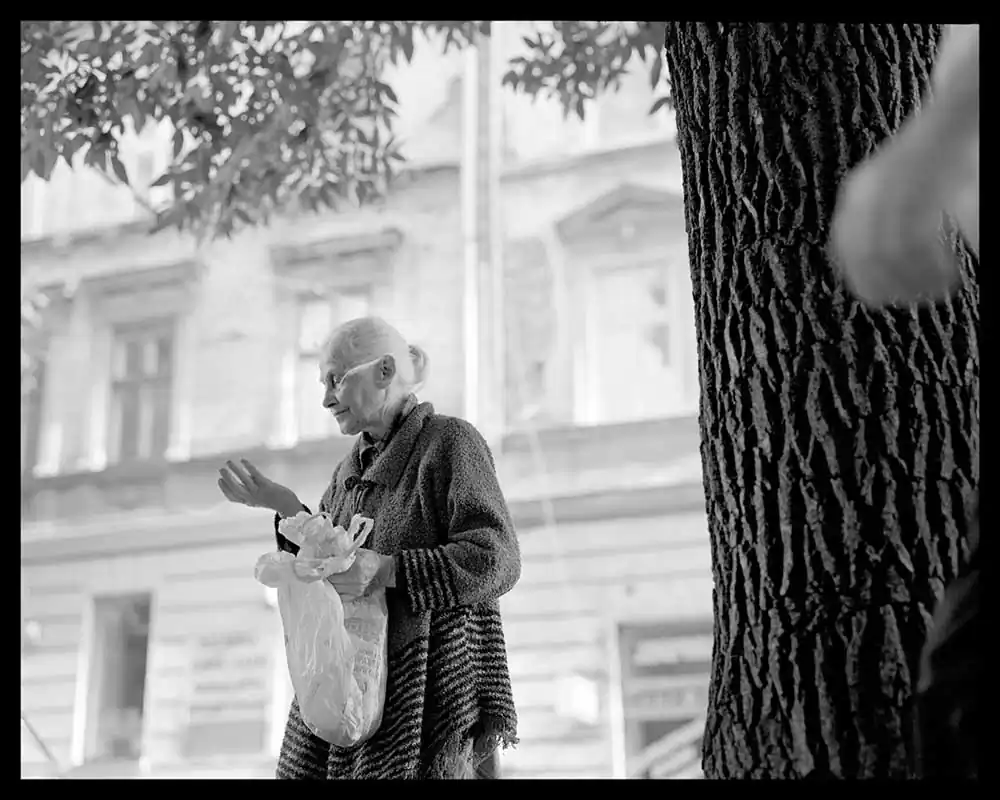 At the corner of the old square, a fragile old woman joined me, looked at me, touched a button oin my coat, and then bent towards me, quite close, like a small girl wanting a caress. She didn’t know how to begin the conversation, and so she began with the standard Where are you from?, probably because of my shoes, or the button. And I answered exactly according to the rules: Prague, the Czech Republic, for a week now, one more week. The old woman, after some hesitation, pulled an ace from her sleeve, the latest edition of the Ukrainian version of The Watchtower. How to explain it to you, how to explain it all, she murmured to herself. And then a spark appeared in her eyes and she knew, she began to leaf through the magazine until she found a picture with some stylised homunculi, a young Barbie doll, and next to her a woman who looked like an aged movie star and my old woman pointed to the aged fatal woman and then to the Barbie and then again to the fatal granny and whispered to me, All this will be no more, nobody will get old, all will be young, and she looked at me with a winning look and touched my button again. And when I looked into her light blue eyes, I could see that the miracle had already begun.