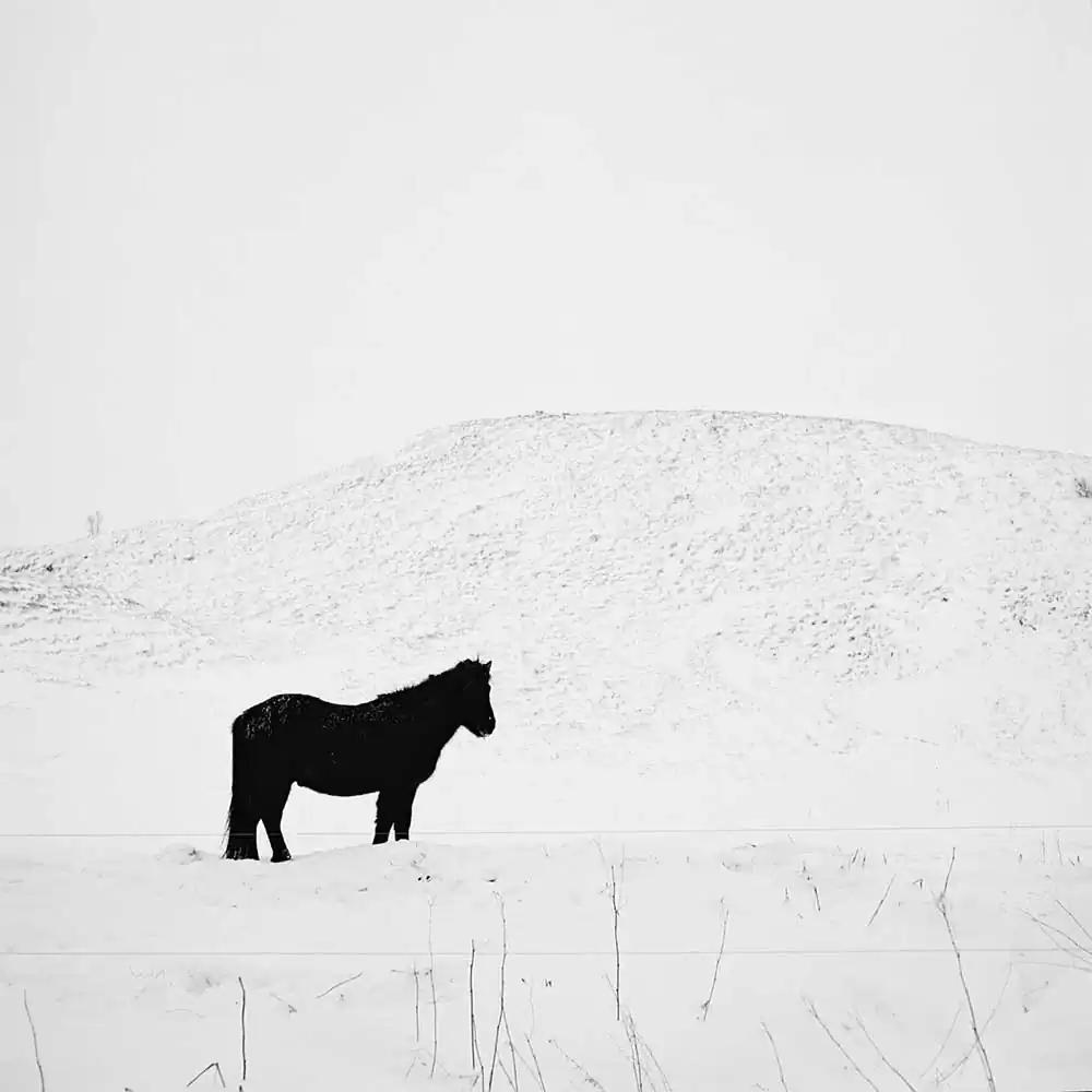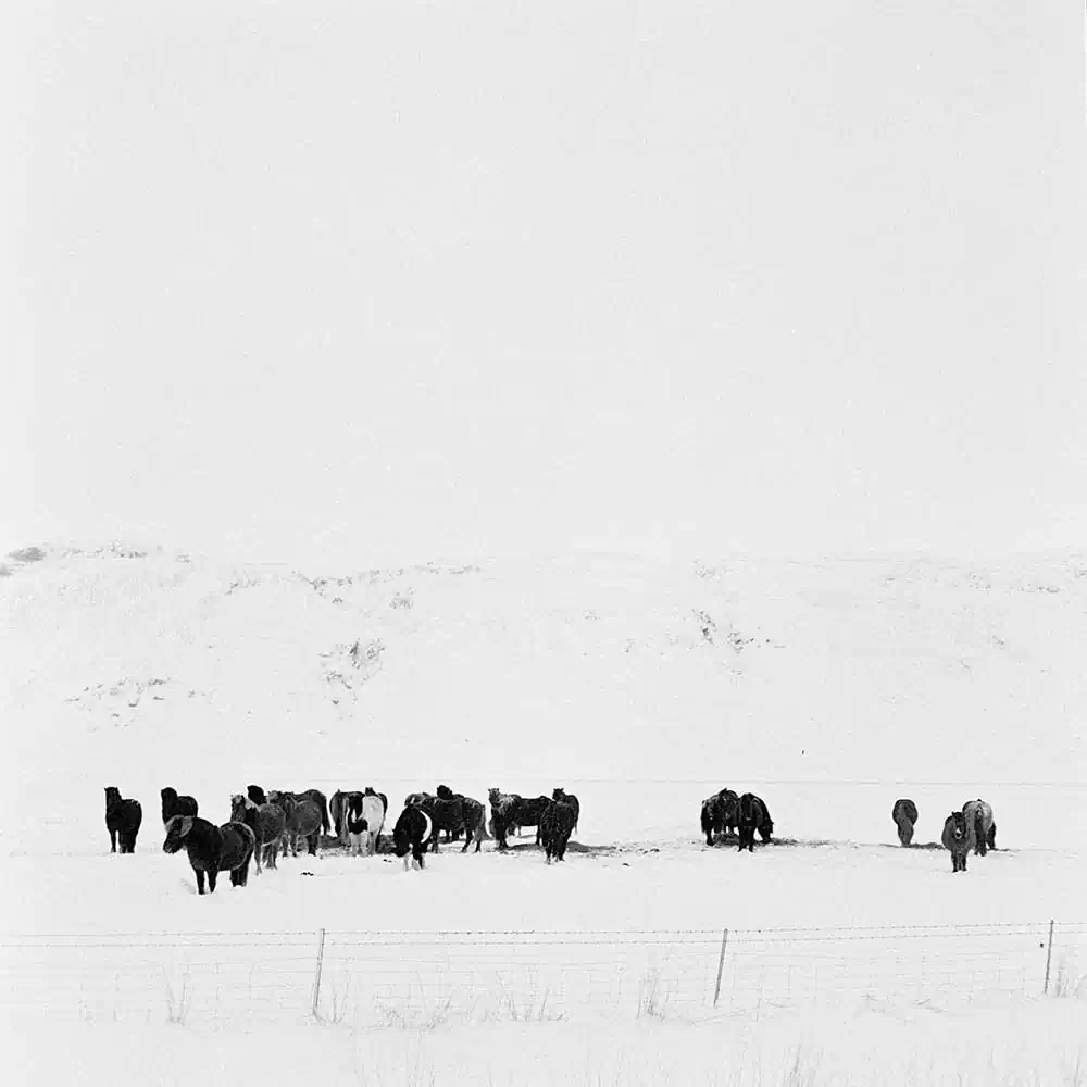 For the urban dweller, this return to nothingness is almost therapeutic, just like art. It resets the mind and it demands contemplation. It brings slowly the observer back to a primitive state of isolation. In an effort to find the most accurate way to capture that experience in images Vassilis visited Iceland during winter and travelled in more secluded areas, away from touristic attractions to photograph the land in the deafening silence of white. By using an old medium format camera he tried to erase in his practice all kind of digital noise of modern technology and adapt his photography to the purity of the surroundings. “Just imagine the only sense present is the click of the camera on the moment you imprint silence on film”.