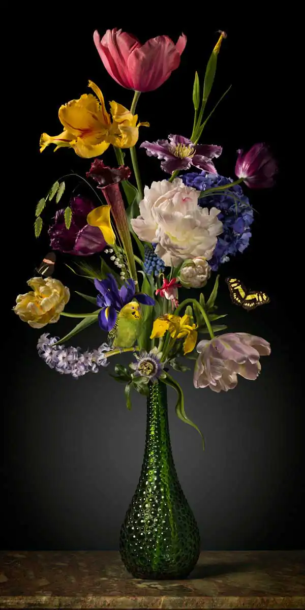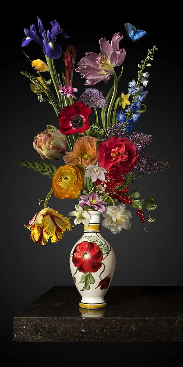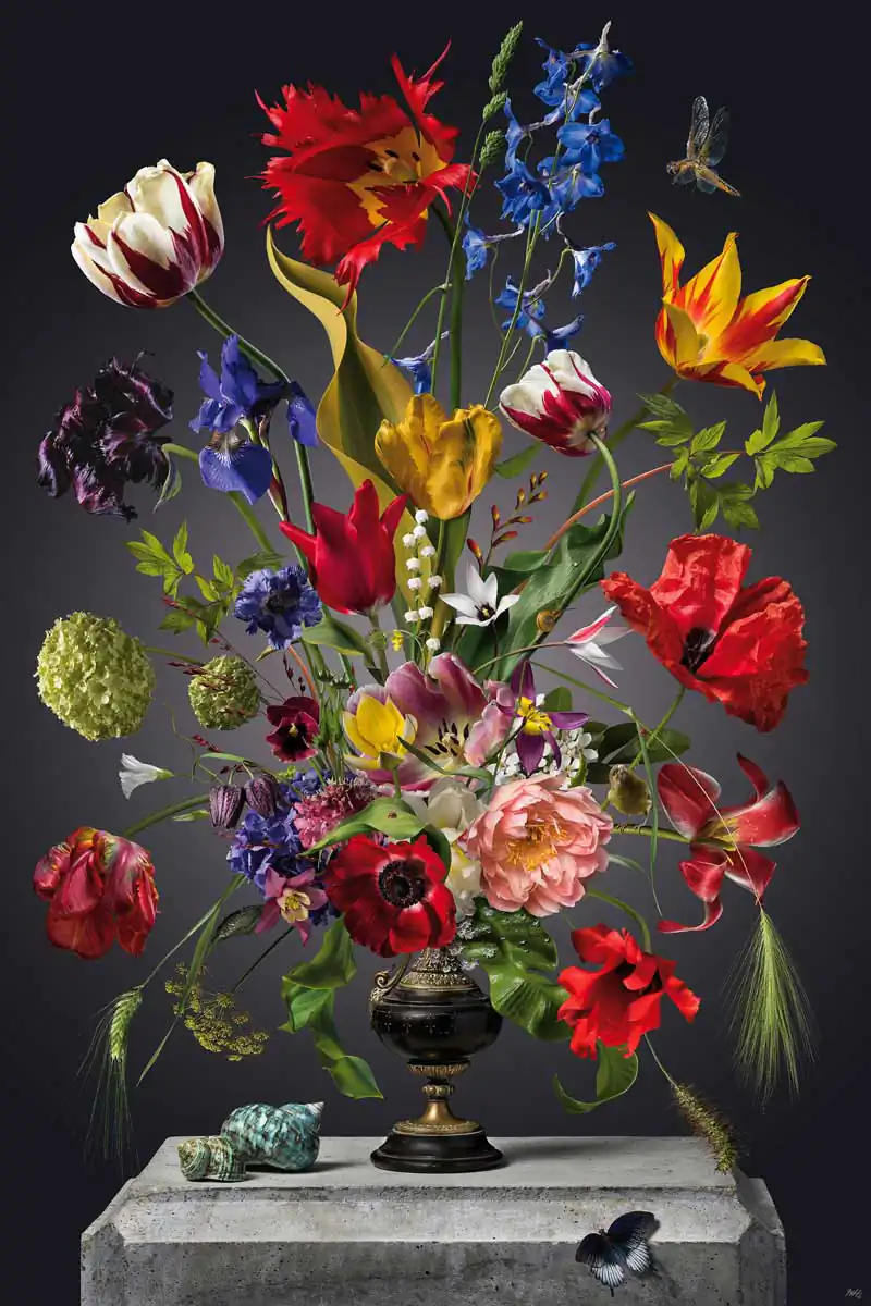 Drawing influence from Rembrandt, van Huysum, and Rubens, Julija Levkova’s floral works bridge traditional aspects of Holland’s “Golden Age” with contemporary photography techniques. A graduate of the Academy of Fine Arts in Antwerp as well as the School of Photography in Breda, Ms. Levkova now lives and works between Belgium and The Netherlands. A rising star in the art world, Ms. Levkova’s photography has been exhibited internationally in London, Venice, and New York.
