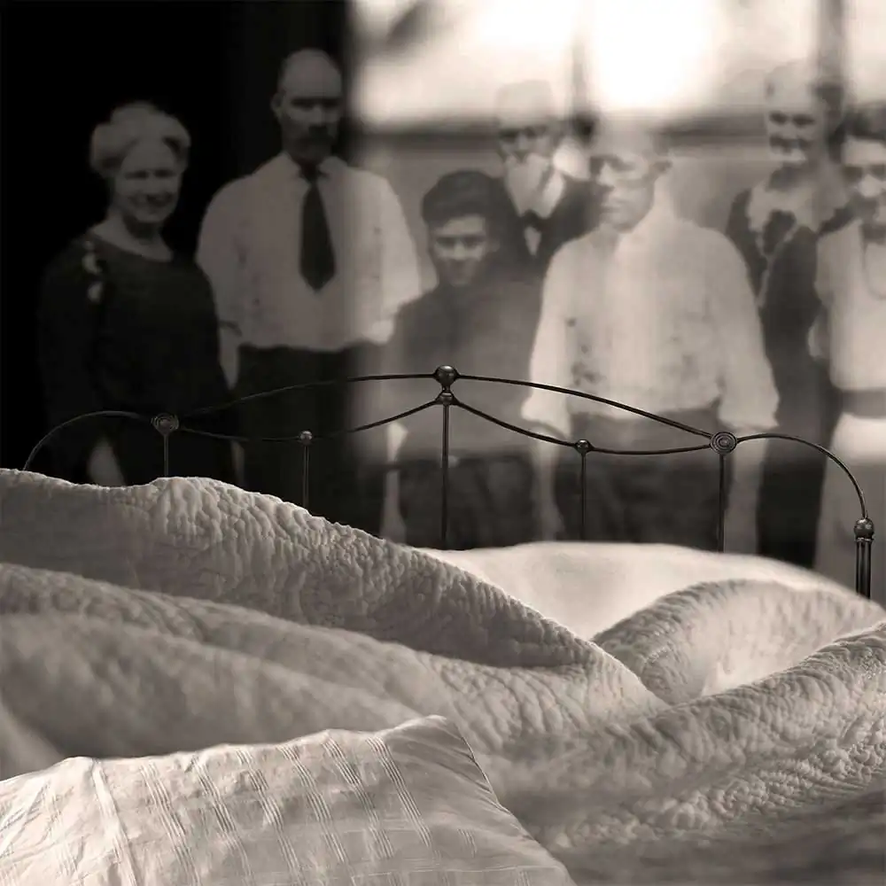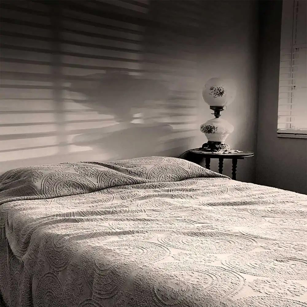 Cognitive behavioral therapy is the most popular treatment for chronic insomnia, like mine. Sleep therapists break down the good, the bad, and the ugly of your sleep patterns and anxieties. My therapist suggested I start keeping a sleep journal to document my sleeping times in order to identify blocks of time when I am asleep. Sleepless chronicles my sleep periods and contains illustrations reflective of my angst. My muse is the bed, which historically has been associated as a symbol of home and security — the images present the viewer with a deeper look into my world of nighttime sleeplessness. The artwork evokes times of change and uncertainty, including moments associated with childhood, illness, and death. Infinite wakeful nights send the mind into overdrive for those overwhelmed with insomnia.