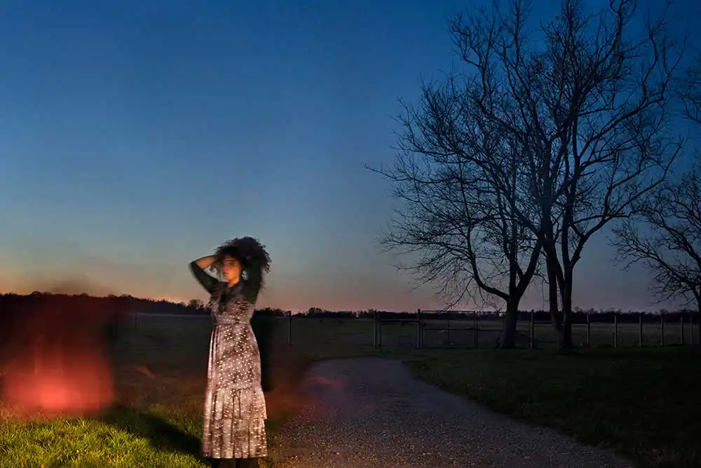 I want my photographs to express a state of delirium, mysteries within and beyond the frame, dangers, delights, and superpowers. My models are photographed mostly after twilight, in dilapidated settings, or in locations as simple as their own bedrooms. I emphasize architecture, topography and situation, and incorporate unique lighting, whether from streetlamps, the moon, or unexpected flashes. I aim for macabre expression and choreography to evoke an almost paranormal or alien-esque storyline. I want to merge my attraction to the landscape with a sense of being stalked or haunted by the space you’re in. I hope to embrace the more fraught side of my psyche, and honor it, because even the challenging and upsetting feelings we have can be channeled and morphed into something beautiful.