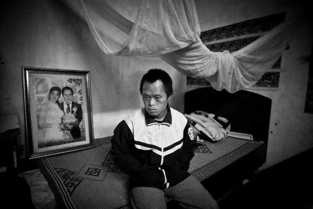 Hanh often embraces Them during their sleep. Both Hanh and Them are victims of Agent Orange, they suffer lesions of the nervous system and they are rarely aware all of their activities but after a period of time of emotional manifestations, both of them have been displaying significant improvements in daily life.