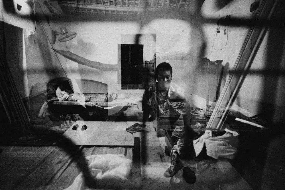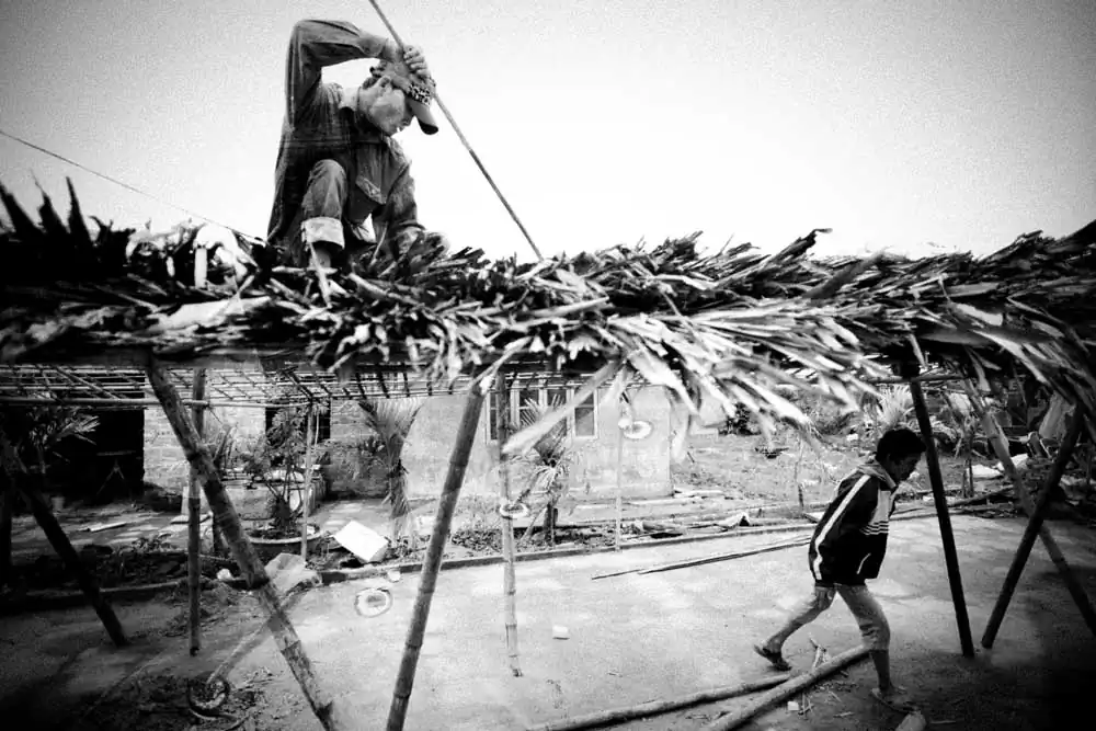 Nhi is the youngest victim in this house – 11 years old, she is playing in an empty room in backyard. This room was a common room to entertain but it was blown off the roof after suffering a storm in 2010 because the house locates next to the sea so it has to bear storms every years. Du (a remaining woman in this picture) was born in 1986 suffering deaf and dumb.