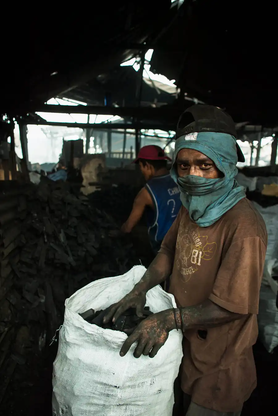 There was a highly compacted muddy road condensed with huts on each of side of it, leading me to a community of huts made with abandoned materials. The people of Smokey Mountain have been forced to live around the dump site to search through trash to find recyclables as a means of income. Surrounding the homes were a large row of charcoal shanties, where these men, women and children from the age of six worked 24 hours a day. These huts had no foundation and could have collapsed at any time. The smoke from the charcoal billowed into the air, leaving a burning sensation in the back of my throat from which I could only describe as acrid.
