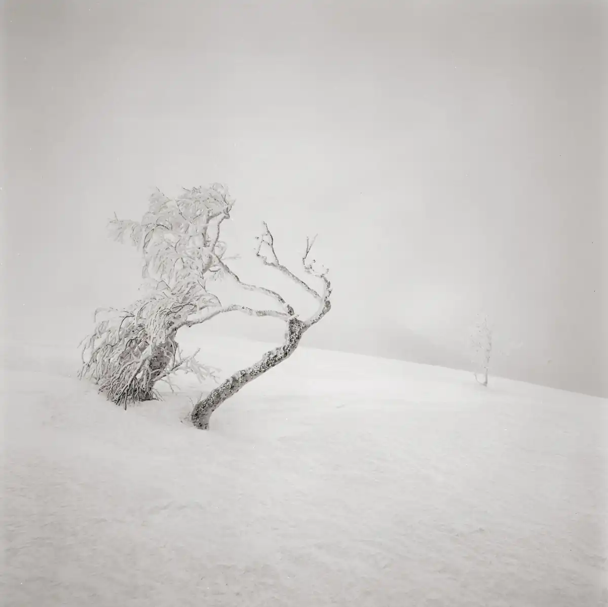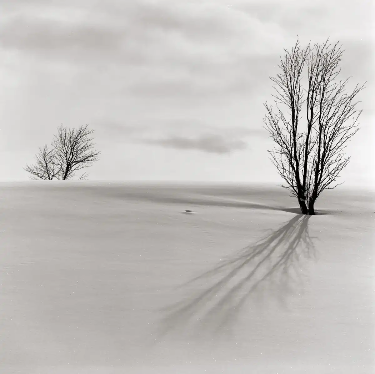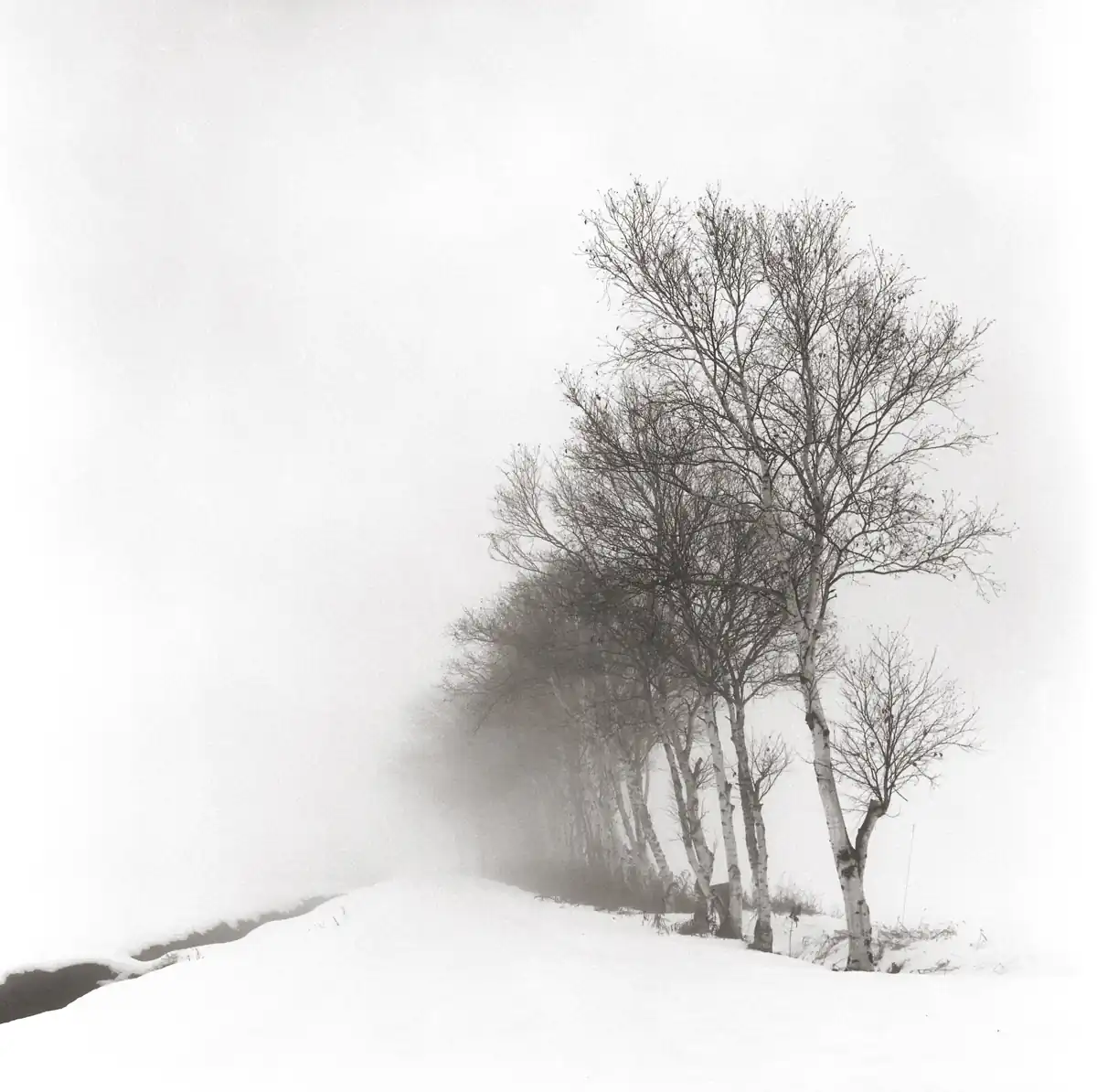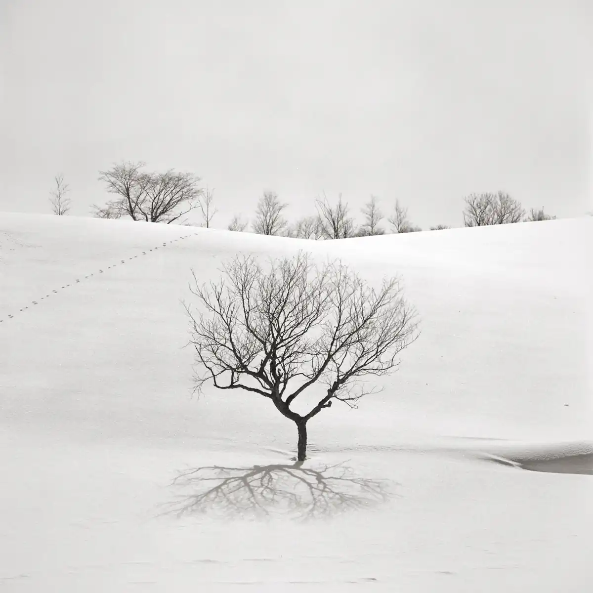 In my area of Hokkaido, Japan, snow usually settles in the middle of December and doesn’t completely melt until the middle of April. The area is buried under snow for almost four months. Snow sometimes continues for days at a time and shoveling snow off the driveway (at least a couple of times a day) is literally backbreaking work. Despite all the troubles, I can say that I like winter here just for one reason, photography. I am always fascinated to see how dramatically snow can change ordinary landscapes into almost surrealistic ones. The aim of the series of photographs shown here is capturing this surrealistic atmosphere and displaying it in a compelling way. Most of the photographs here were taken while backcountry snowshoeing. During winter in Hokkaido, landscapes change a lot faster than in other seasons.