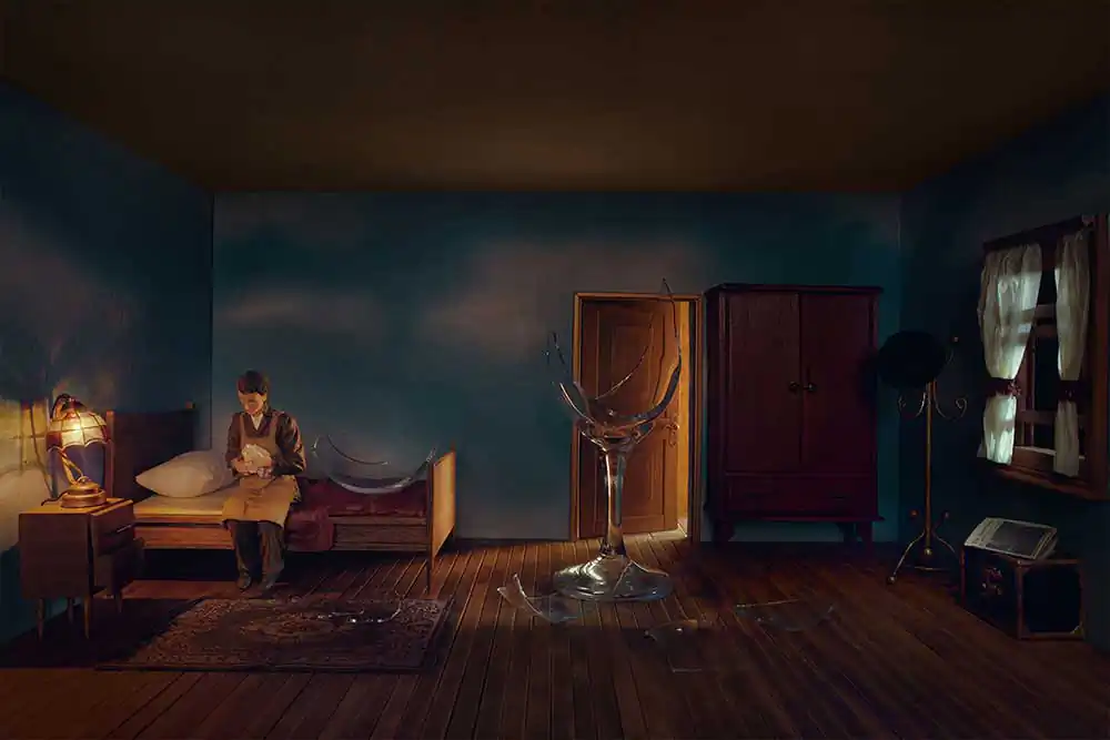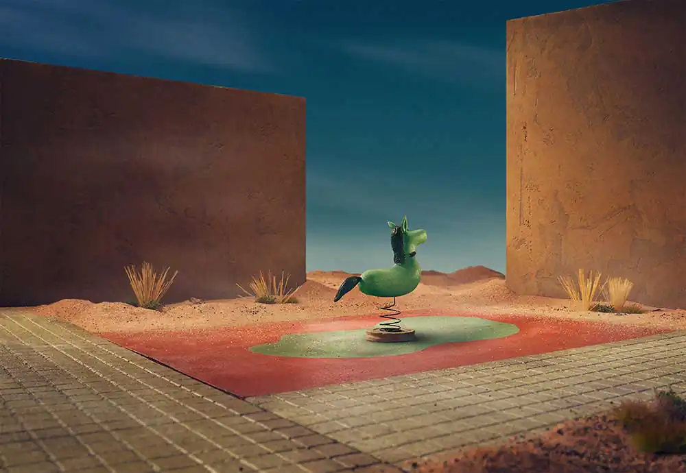 The world began somehow alienating and he felt he had to connect back with that world through a non-verbal communication. He had in mind a quote from Picasso: Without great solitude, not serious work is possible. He has then started to work and visualize what he wanted to express though imaginary. His main inspiration came from painters such as Edward Hopper, Giorgio de Chirico and Osvaldo Louis Guglielmi with their empty streets. He has built different environments which usually are very busy and crowded but this time the focus was only on one object. An object left alone with no contact to the others, left it there fighting its own loneliness. He believes many people around the world feel isolated, secluded, because of being cut off by circumstances or by wish. Solitude is a subject which reflects our daily life, our approach with the world and the others.