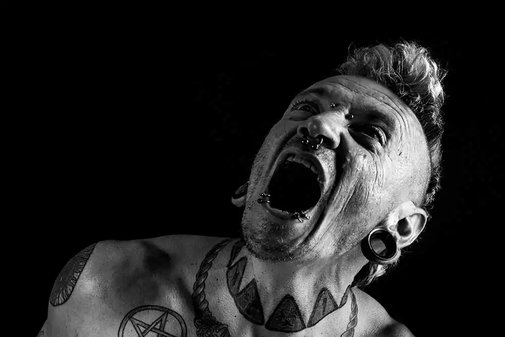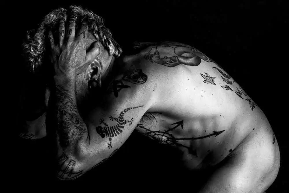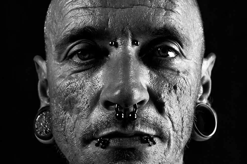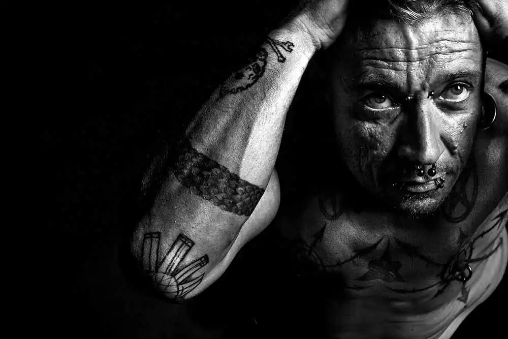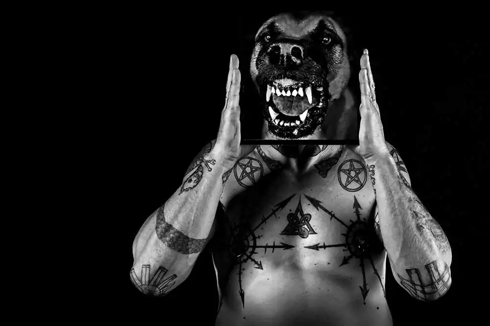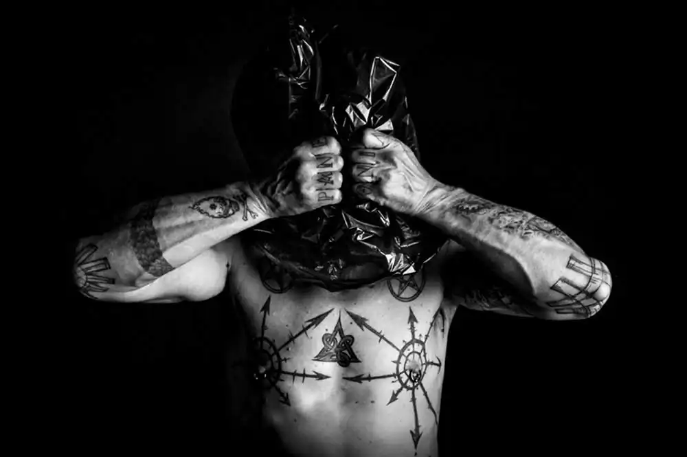 A man covered in tattoos talking about spirituality and religion, but in their eyes they were just tattoos, something that only prisoners and good-for-nothing can have on their skin. An old question between being and appearing; to be a man of medium-high culture, with a deep spirituality and humanity, a scholar of religions, but to appear as an outcast of a society that judges people how they look like. For these reasons I decided to photograph this man and his skin in a photographic studio, as one does with a fashion model; someone who represents the importance of appearing above being, but accepted as normal and good. [Official Website]
