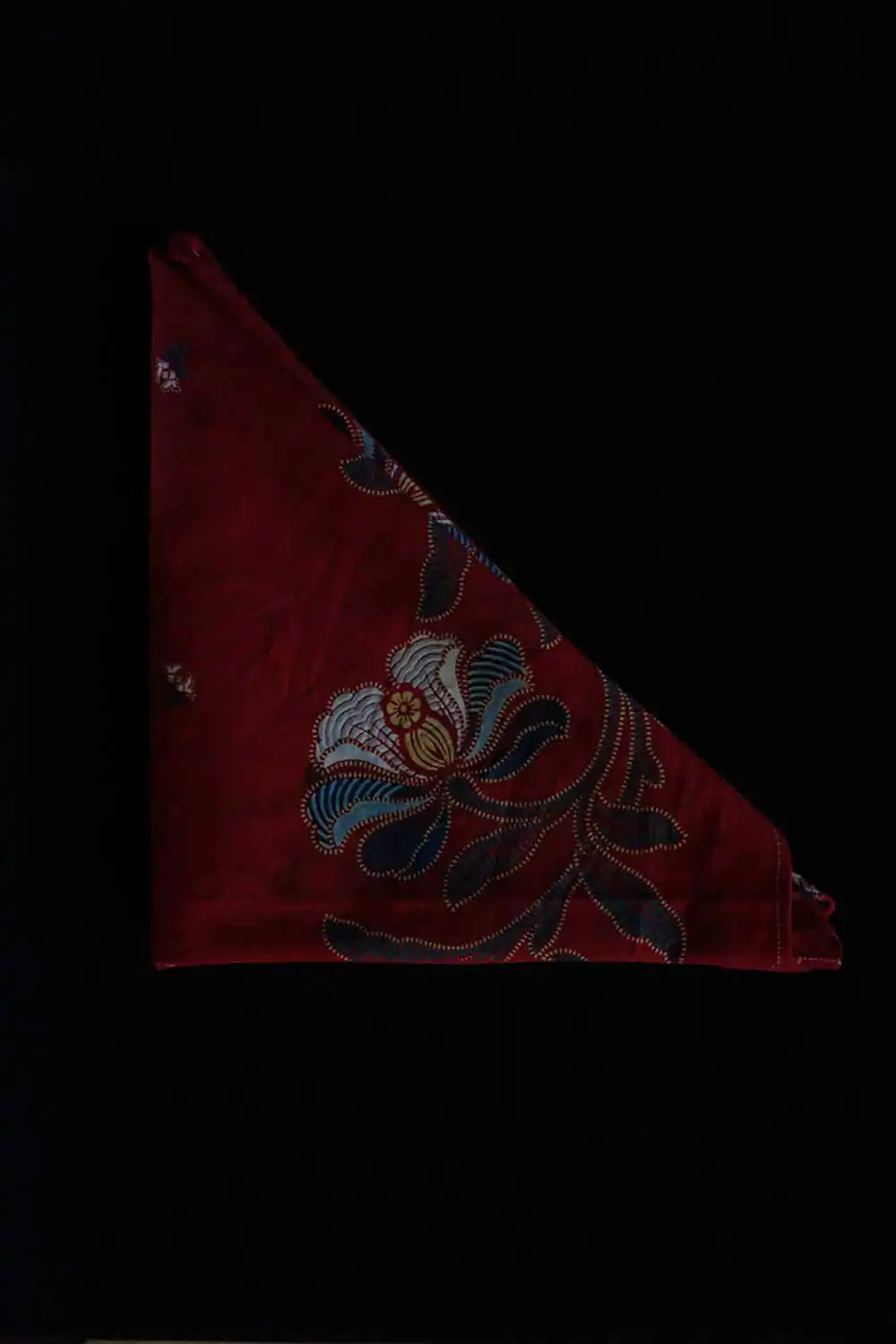 Shawls and sundresses were sewn from Aglitsky chintz in the North, bright flowers sprouted across the red field of fabric. The scarf shown in the photo is over 150 years old. Aglitsky chintz was made at the factories of Pavlov Posad and Vladimir. Girls went to “vecheren’ki” (“evening parties”) in these dresses and in the summer they wore them as casual clothes. Later sundresses were even worn on haymaking, and it was not appropriate to appear in them to celebrations.