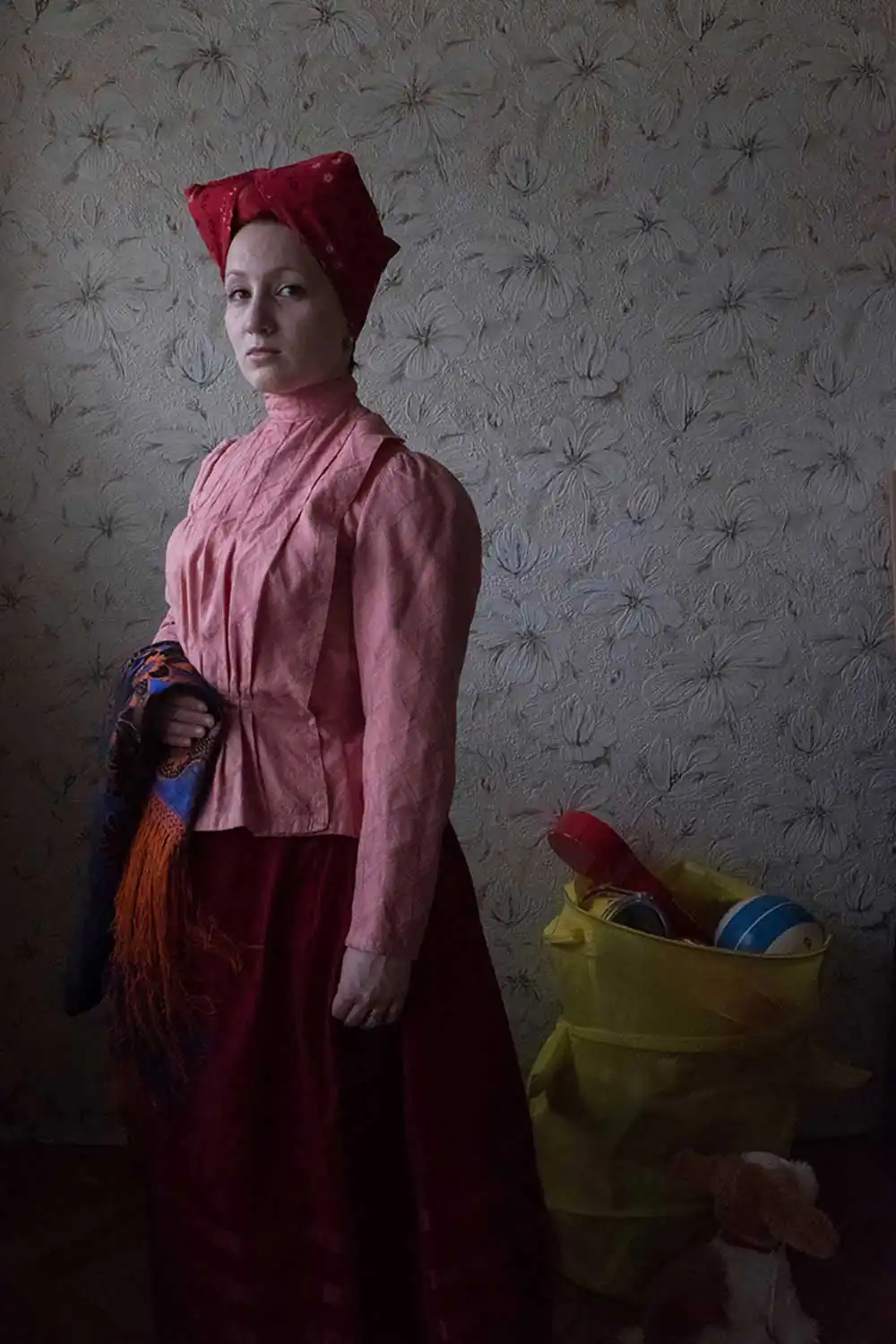 / A North Russian wedding has a unique tragic mood. The pre-wedding period is as dramatic as nowhere, because for a bride the wedding was often a forced step. After the consent of the parents there’re rituals to “separate” the bride from her family: her girlfriends sing funeral songs with choral litany, also invite mourners. The groom doesn’t see the bride until the ceremony. On wedding day her face is hidden behind a scarf. During the celebration the bride doesn’t eat anything and sits with her head down, while guests and family members feast and have fun.