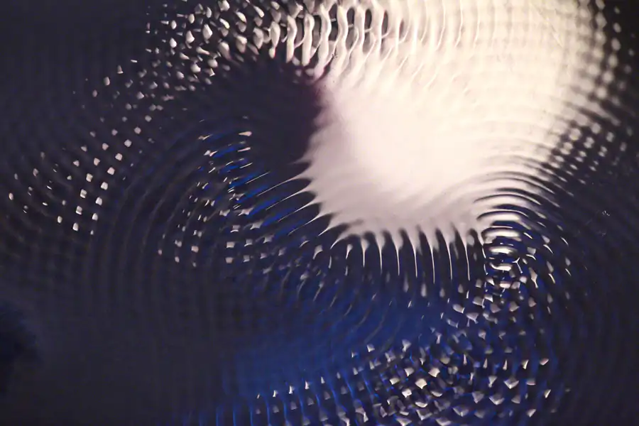 These are photographs of sound encountering light as seen through the medium of water. On one hand, I’ve staged common phenomena and on the other hand I’ve captured tiny cataclysms never to be repeated. I bring you evidence of a minute history, in which no instance is petty and every instant too complex to perceive in its entirety. A moment is all time, an atom the universe. These photographs aim to capture the beauty and turmoil that occurs inside the most pedestrian events. Sunlight bounces on water, sound waves march toward oblivion.