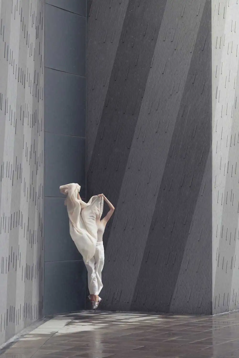 The relationship between body and space in the urban architectural environment is central to my art composition. Each space has its own unique texture and feel. These include superficial details such as temperature, humidity, and insolation duration.