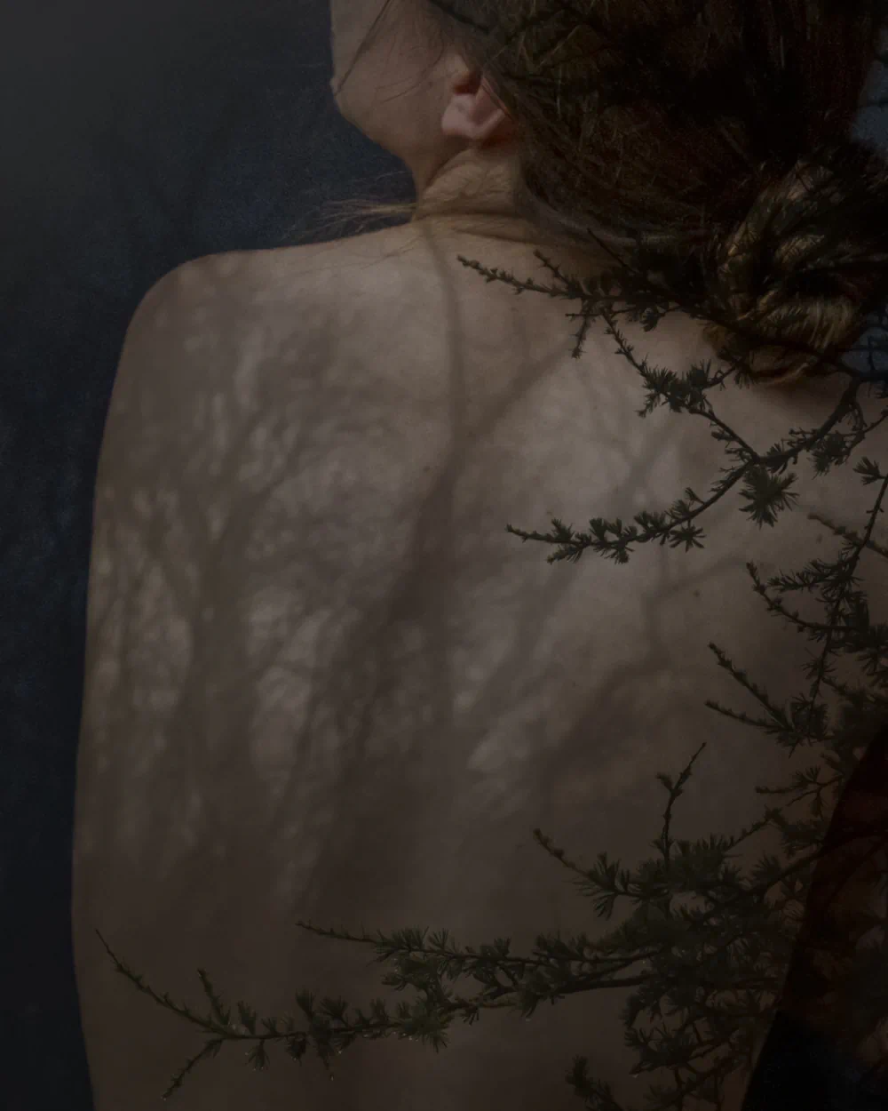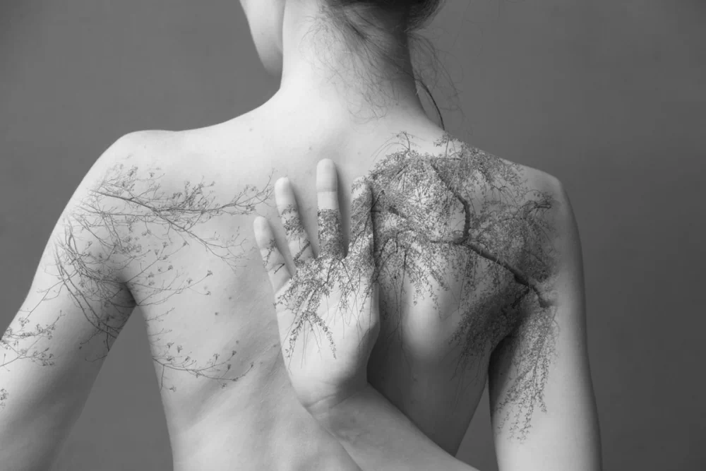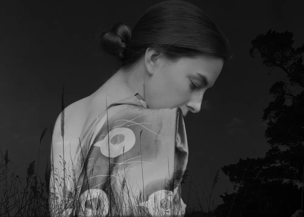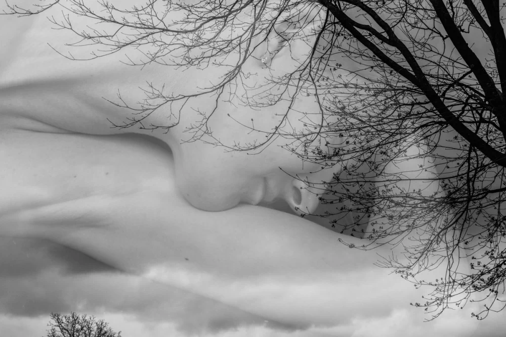 Solitude and silence are central to her photography. The human form, entwined with natural elements, becomes a suggestion of vulnerability and, perhaps, isolation. These visual elements create atmosphere and depth within the images. In these moments of stillness, layers gradually reveal themselves, mirroring the process of understanding emotion, not immediate or fixed, but slow, recursive, and often unresolved. Silence, in her work, is not emptiness but presence, a space where meaning gathers quietly, where absence becomes as significant as what is shown. By intertwining silence with presence, she creates a tension that holds the viewer in a state of awareness, attuned to both what is visible and what remains just beyond reach.