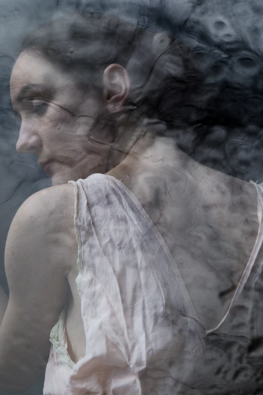 Photography, for her, is an act of introspection. Each image is both a reflection and a confrontation, a symbolic mirror that holds space for vulnerability. In this series, she is drawn to the tension between visibility and concealment. The body can emerge from and dissolve back into its surroundings. She is interested in what appears when one allows oneself to be seen not in clarity, but in ambiguity. Shadows obscure as much as they reveal, gestures remain incomplete, and faces turn away or dissolve into texture. This visual language resists fixed meaning, inviting viewers into a space of emotional openness where interpretation becomes deeply personal.