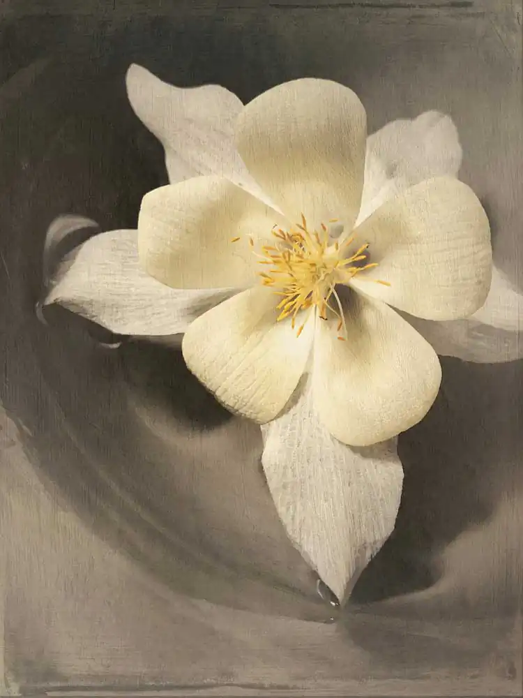 These images are captured, layered and printed digitally with archival pigment ink on vellum. White gold, 24k gold or silver leaf is then applied to the back of the print, creating a silken luminosity on the print’s surface. Throughout history, civilizations have prized the use of precious metals for their beauty and sanctity. The leafing process suffuses the intrinsic value of my treasured subjects with the implied spirituality of the gold. Within the limited edition, the prints may differ in color or texture, and, as the effect of gilding inherently varies, each of the prints is unique.