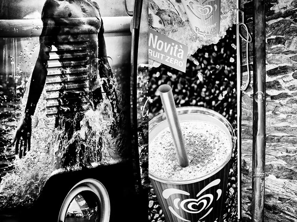 The embedding of mass media spaces into the architecture of buildings, shop windows, subway stations, and market places is where STATIC TENSIONS sets in. The series focuses on the visual overload of the individual due to an artificially created dream world. While walking the streets, the urban surroundings merge with the fictional media world of advertising and create something new. The images are “true”. They are not digitally composed collages.