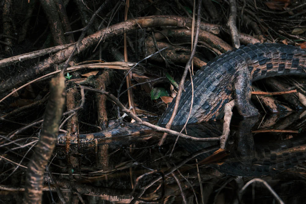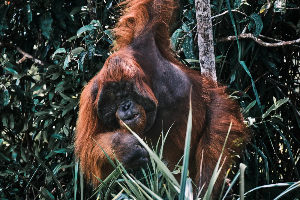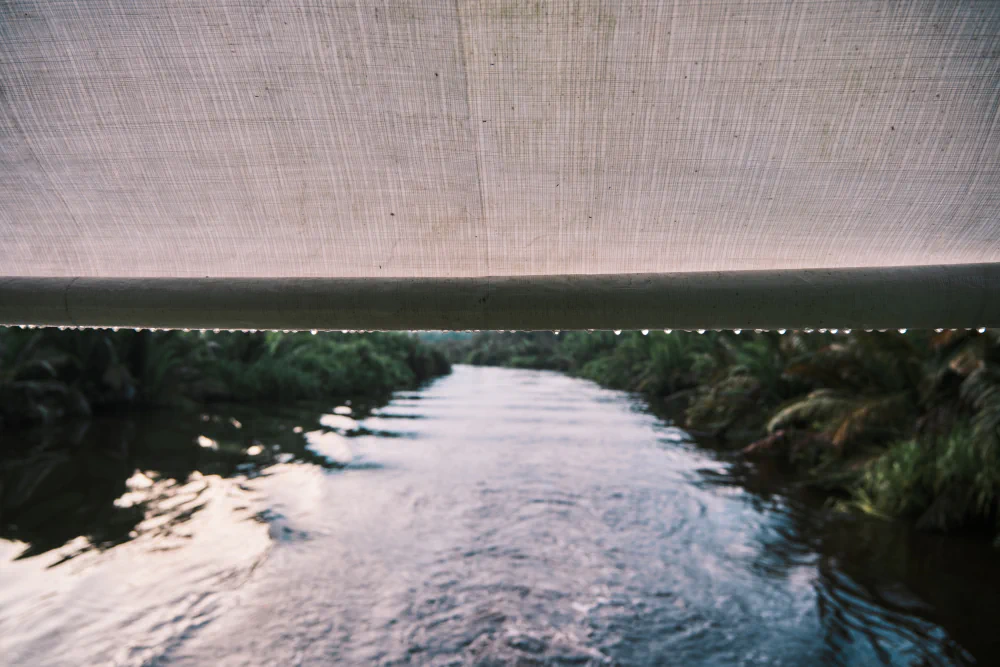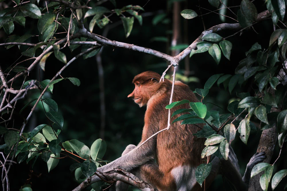 From the city, the journey moves toward Borneo, one of the last major green frontiers in Southeast Asia. In Tanjung Puting National Park, travel slows aboard a small klotok. Tea-colored rivers cut through the rainforest. Wildlife appears without spectacle. Orangutans move through the canopy with deliberate gestures. Proboscis monkeys watch from the mangroves, their unmistakable profiles silhouetted against the water. Birds of prey circle overhead. At times, a crocodile emerges along the riverbank, perfectly still, part of the landscape rather than an interruption. This is an ancient ecosystem, fragile and under constant pressure from deforestation and industrial plantations, yet still capable of revealing what Borneo once was before large-scale human impact.