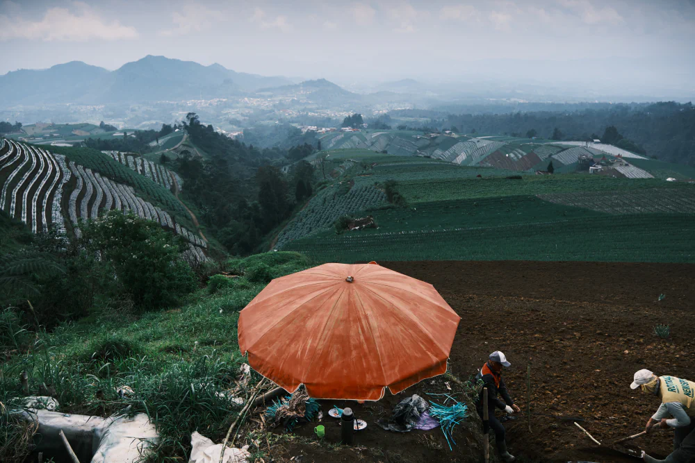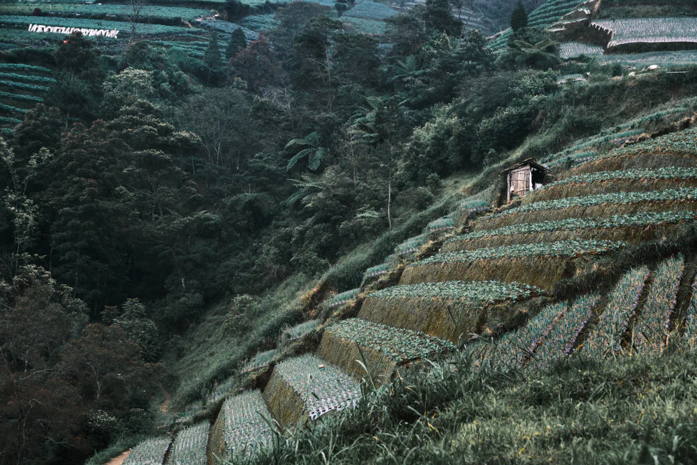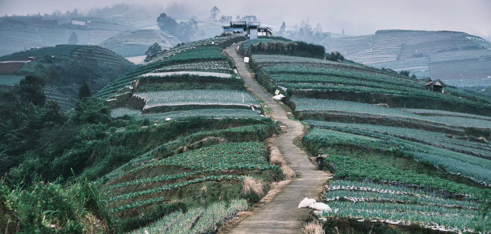 Java marks a clear transition. It is the political and cultural core of the country and its most populated island. Here, the landscape has been shaped by centuries of human presence. Terraced rice fields follow collective water-management systems that remain functional today. Not far away, Nepal Van Java appears suddenly, perched on steep mountain slopes like a suspended outpost. Reaching it requires driving along extremely narrow and steep roads, often without barriers, with sheer drops just inches away.