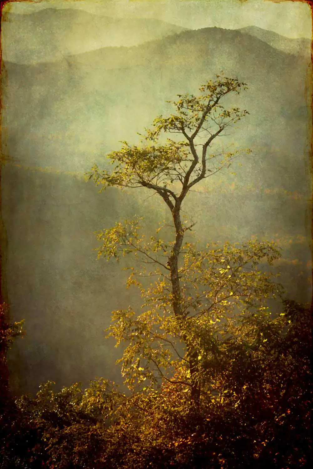 I photograph intuitively – what I feel, as much as what I see. Informed by a background in painting, art history and design, I layered oils on silver gelatin prints in the ’80s and ’90s to find balance between the real and the imagined. My images are now layered digitally with color and texture, often altered within the edition, honoring the inconsistency. Printed on translucent vellum or kozo, these ethereal impressions are illuminated with white gold, moon gold, silver or 24k gold on verso, creating a luminosity that varies as the viewer’s position and ambient light transition. My process infuses the artist’s hand and suffuses the treasured subjects with the implied spirituality and sanctity of the precious metals – insuring each print is a unique object of reverence. The ‘States of Grace’ series has evolved organically into series within series that can be curated by subject, feeling or treatment.