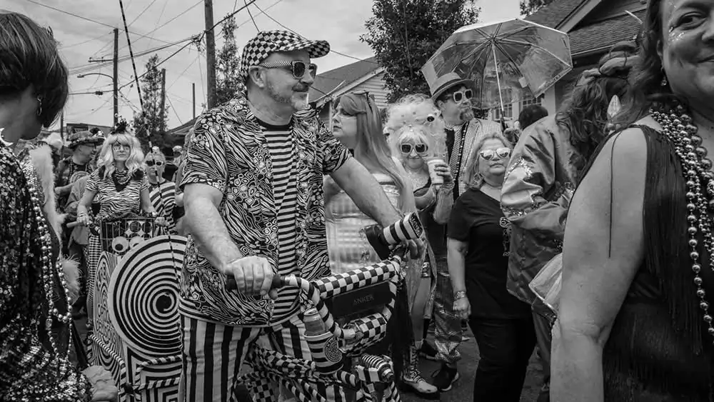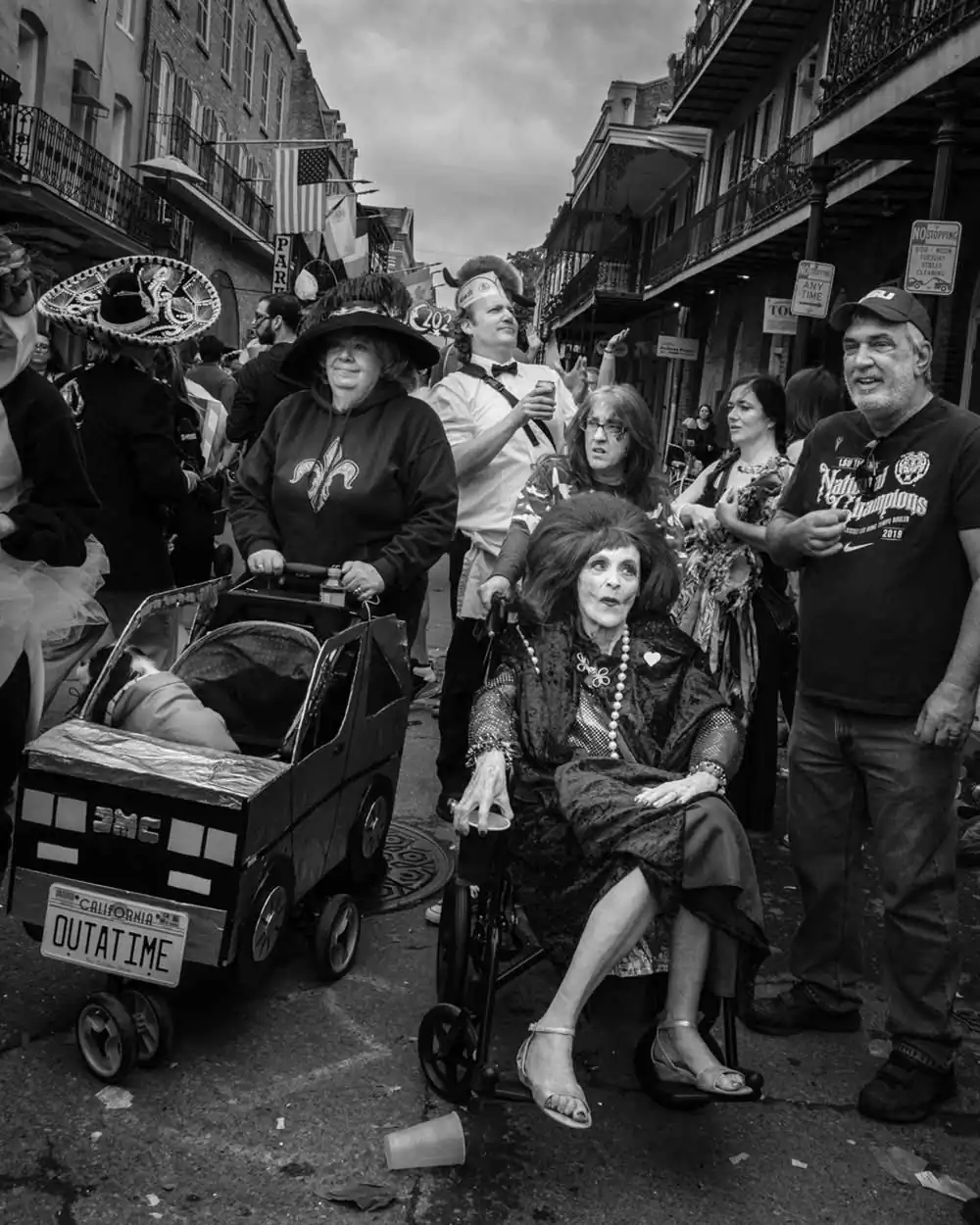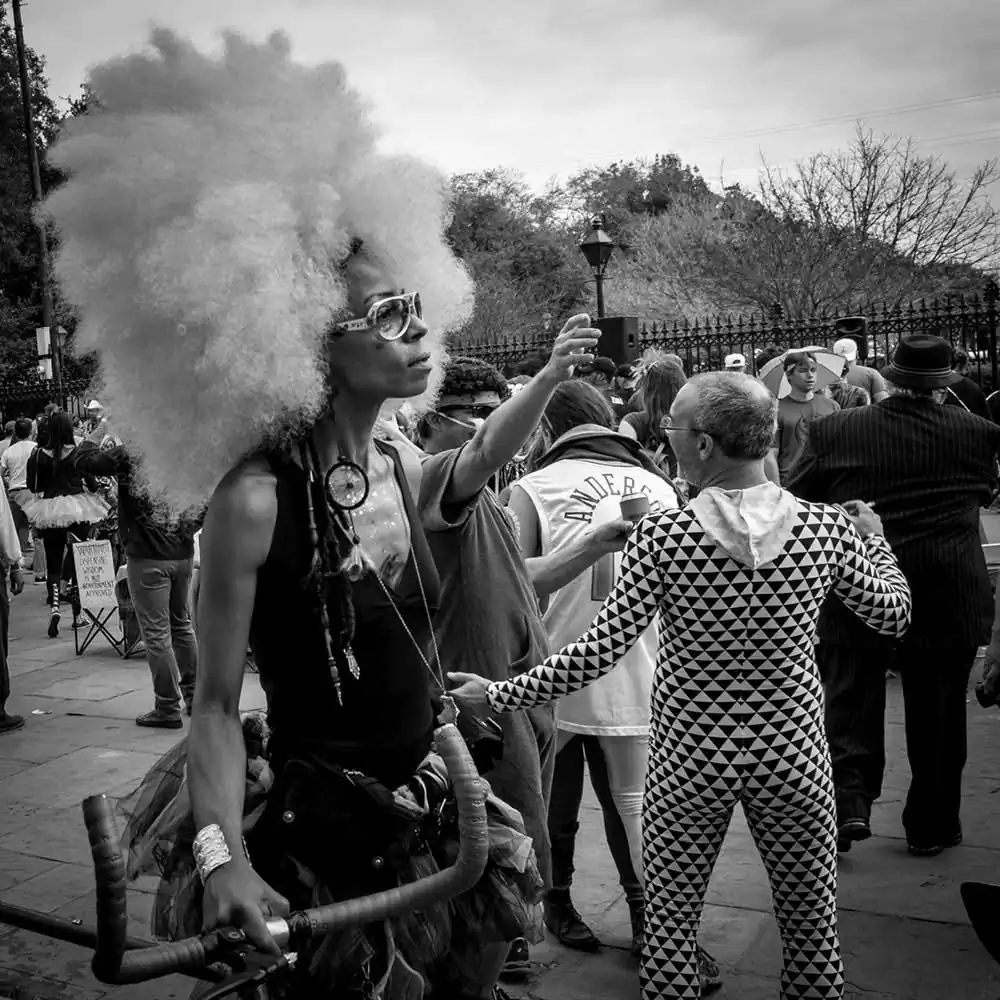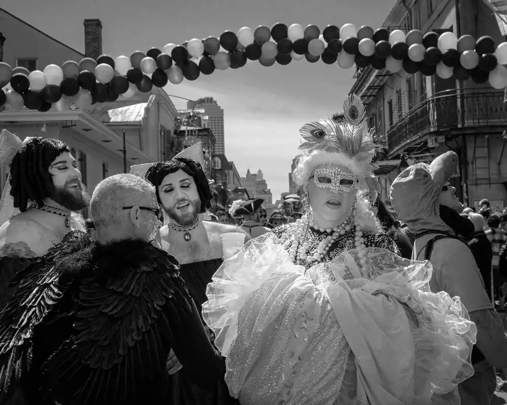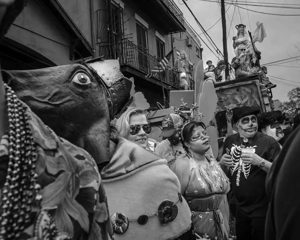 Part of my process during Mardi Gras involved shooting from the hip while fully costumed and masked in close proximity to my subject, allowing a certain intimacy to take place.