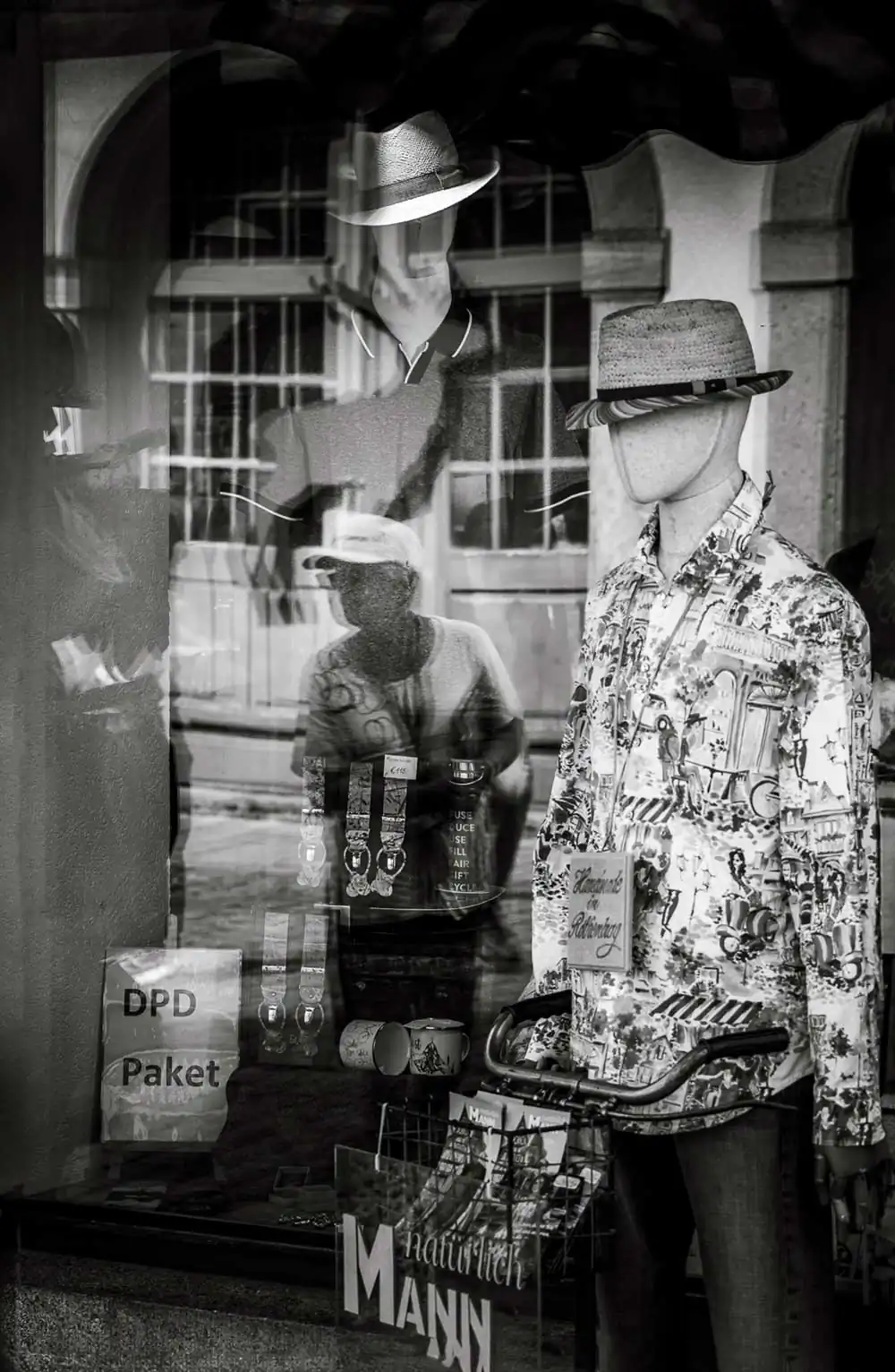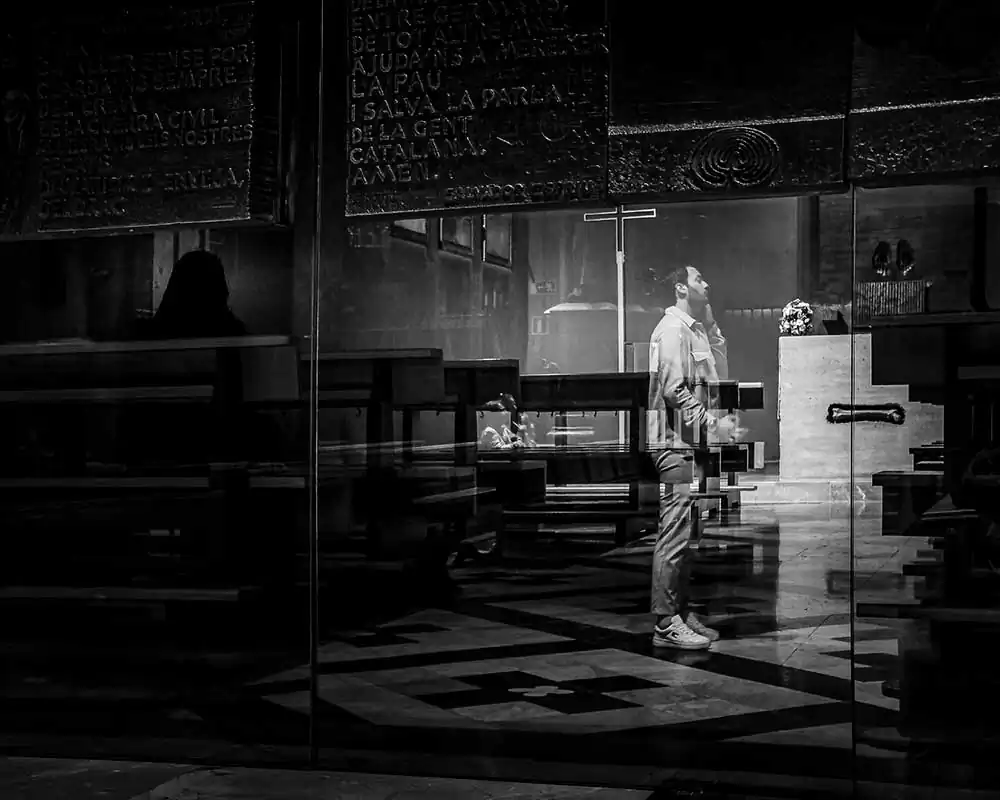 “Two Worlds” employs a street photography technique that captures the interplay of light and reflective surfaces to create intricate, multi-layered compositions within a single exposure. These images mimic the visual effect of multiple exposures without digital manipulation, preserving the authenticity of the moment. By utilizing reflective glass, I juxtapose the vibrant dynamism of urban architecture with the quiet, unspoken stories of those moving through these spaces. The resulting images blend the chaotic energy of urban materialism with the everyday simplicity of human existence, creating a visual commentary that feels both organic and deliberate.