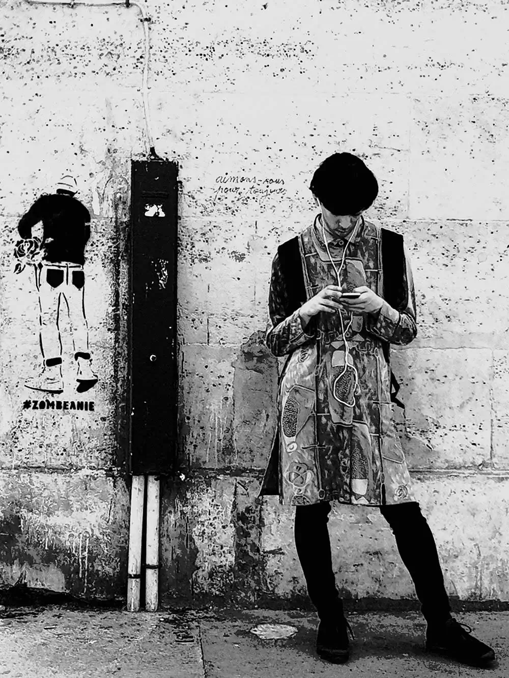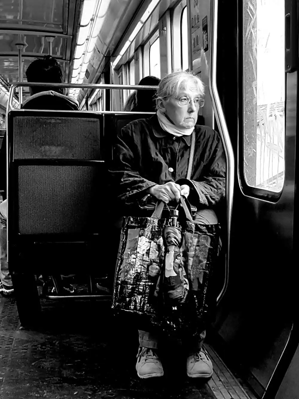 To capture and above all to share these moments is gratifying and keeps me on the look out. The street is the stage and I stand in the wings waiting for the actors and actresses to popup. Actually they don’t act, they are themselves. And there are no script, no prompter, no interludes, and the performance goes on and on. It is well worth catching vivid views of the show on the spot, in the “métro”, the coffee shops, flea markets, fun fairs, etc. The scraps I collect make up a mosaic in black and white,which I hope is not purely decorative. But it is up to the “regardeurs” to decide.