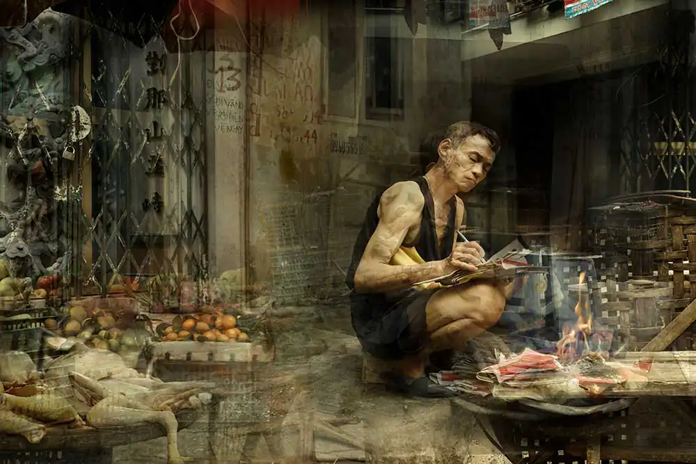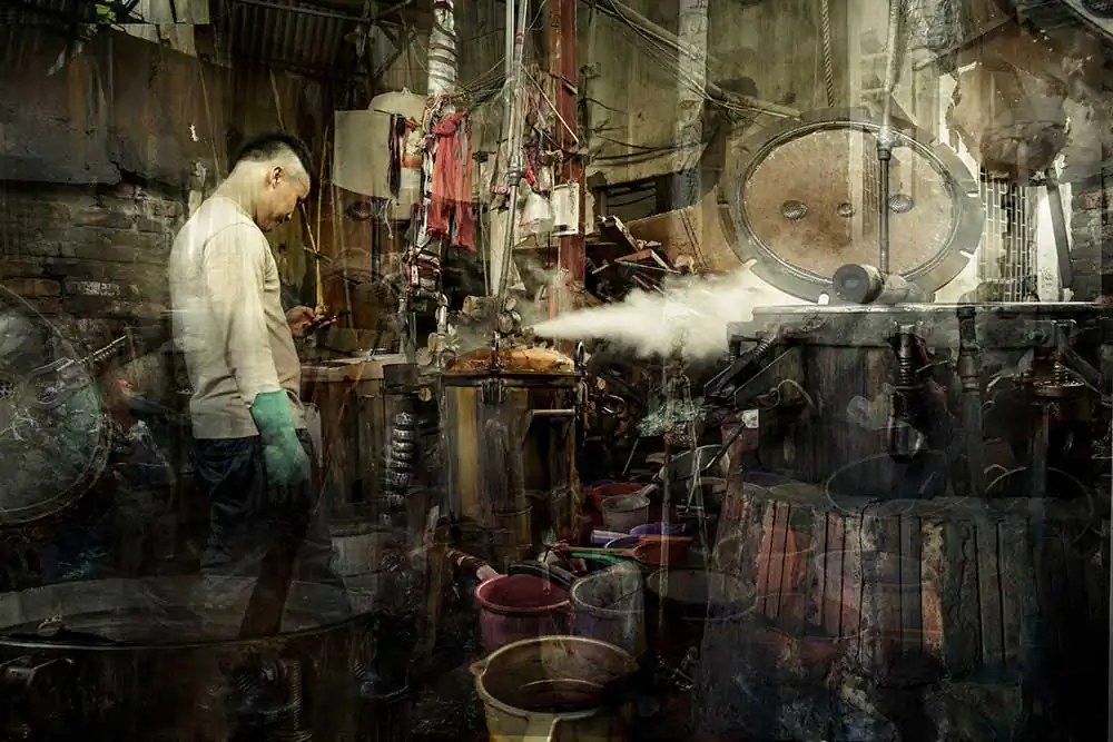 The series has an earth color palette, all spanning through the tones of the city colors. Buildings, walls, trees, roads, gravel and soil, bamboo, wood, bricks, stone and the markets with their goods, the food in the streets, even the smells are in the palette that wraps all the images of the series. These are the things I have seen and which I want to talk about, which I want to tell in my works.